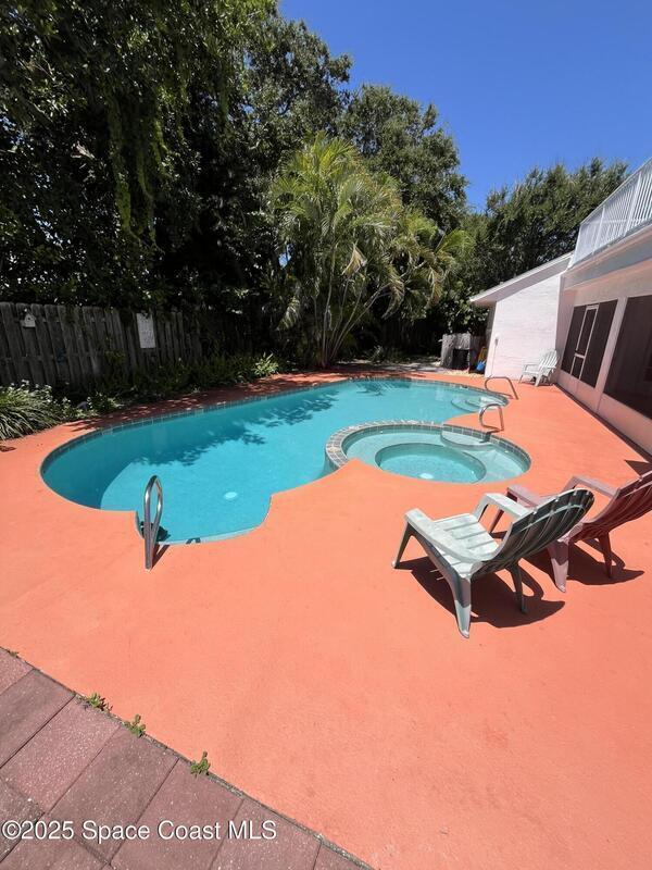 NO HOA multi-generational living. Florida lifestyle at its finest. Less than 1000 ft to the shores of the Atlantic. This 4 bedroom/3 full bath pool home is in a perfect coastal location. Living area flows out to the 15x25 screened in lanai area overlooking the crystal blue pool & tropical backyard w/ outdoor shower. Relax on your 2nd floor balcony enjoying stunning sunrises & rocket launches. Split plan master bedroom & guest bedroom downstairs w/ 2 bedrooms upstairs. Home well maintained by homeowners & is ready for your personal touch. Roof July 2025, W/D new, new exterior paint, A/C nearly new, water heater July '25. No HOA. 45 min. to airport, walk or golf cart to Port Canaveral restaurants. Activities include surfing, fishing, boating, biking, many walking paths & cruising. Spotless clean, move in ready!