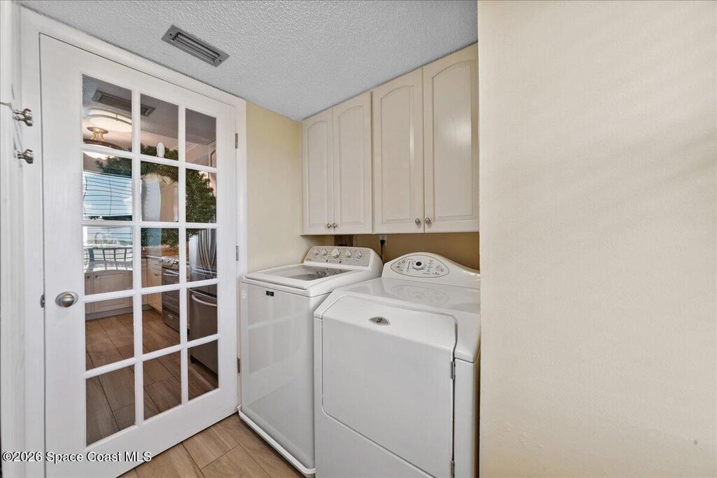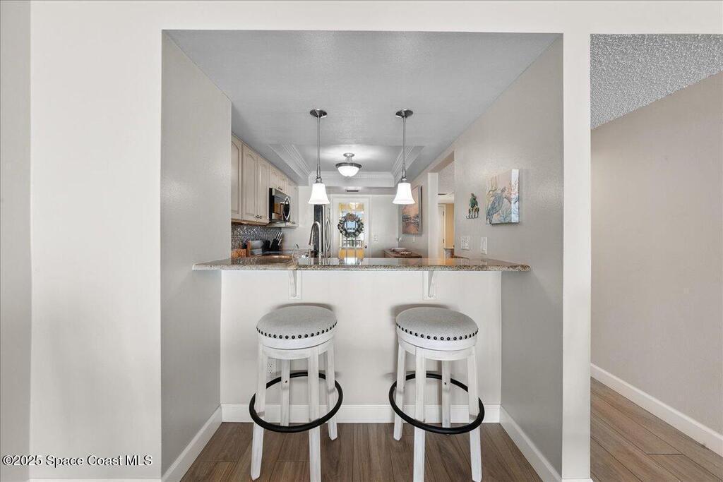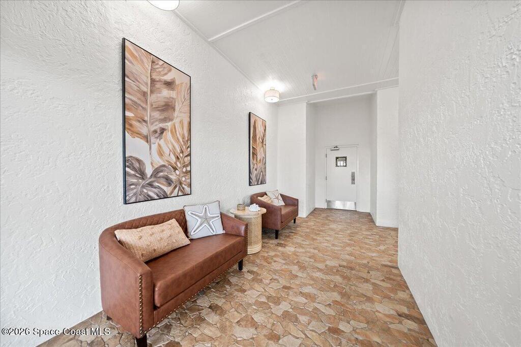 Direct oceanfront serenity defines this beautifully updated condo, move-in-ready and high-end porcelain flooring. Newly installed plantation shutters enhance the great room, while blackout shades in the primary bedroom provide ideal room-darkening comfort. With 1,464 square feet, the layout offers more living space than most two-bedroom residences.The kitchen includes granite countertops, soft-close cabinetry, stainless steel appliances, and a pull-out pantry with en-suite laundry.A year-round heated pool, community gas grill, elevator access, and nearby shopping complete this well-appointed oceanfront residence. SIRS Complete.