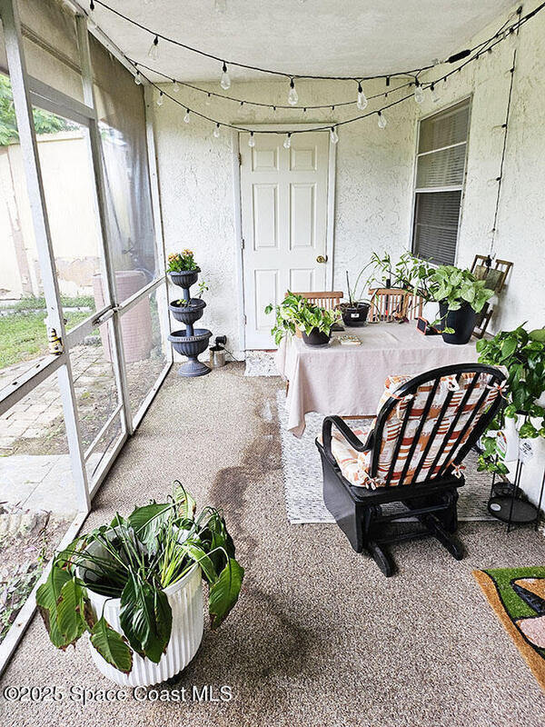 Opportunity is here! Lock in today's price in a hot market. This 2 bedroom, 2 bath townhome in The Meadows has a new roof in 2025, tile floors, a breakfast nook, a utility room for washer and dryer, an enclosed screened porch with a utility room and a small back yard for a garden out back. It's a comfy home or a great seasonal residence. Close to Kennedy Space Center and the Indian River, less than an hour to Orlando's professional sports teams and theme parks, and Daytona Beach International Speedway. Association fee includes grounds maintenance, cable TV and a full time manager.