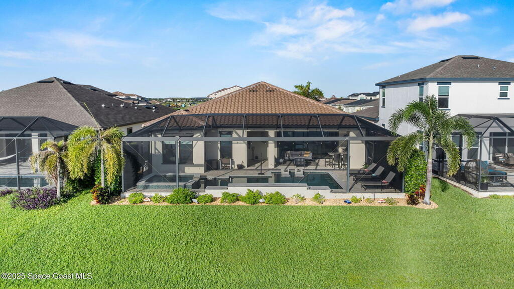New Price improvement! West Viera Lake front Pool Home in Reeling Park South with so many luxury Upgrades. 1% lender credit when you use our preferred lender!! Designed for Florida living, showcasing a Stunning pool & spa over looking the water, amazing outdoor kitchen, tile roof & hurricane-impact windows & doors. The oversized 2-car garage w/golf cart space adds convenience, while whole-home surround sound extends indoors onto the back patio for seamless entertaining. Entertain in a gorgeous chef's kitchen w/stunning 16-ft quartz island, Restoration Hardware pendant lights, SS appliances & abundant storage overlooking a spacious great room. The private primary suite features walk-in closet & spa-like bath, while 2 guest bedrooms & baths provide comfort & flexibility. Modern upgrades shine thru-out. Residents enjoy a prime Viera location near The Avenues, Shopping, Dinning, golf, schools & beaches, Addison Village amenities including clubhouse, fitness center & resort-style pool!