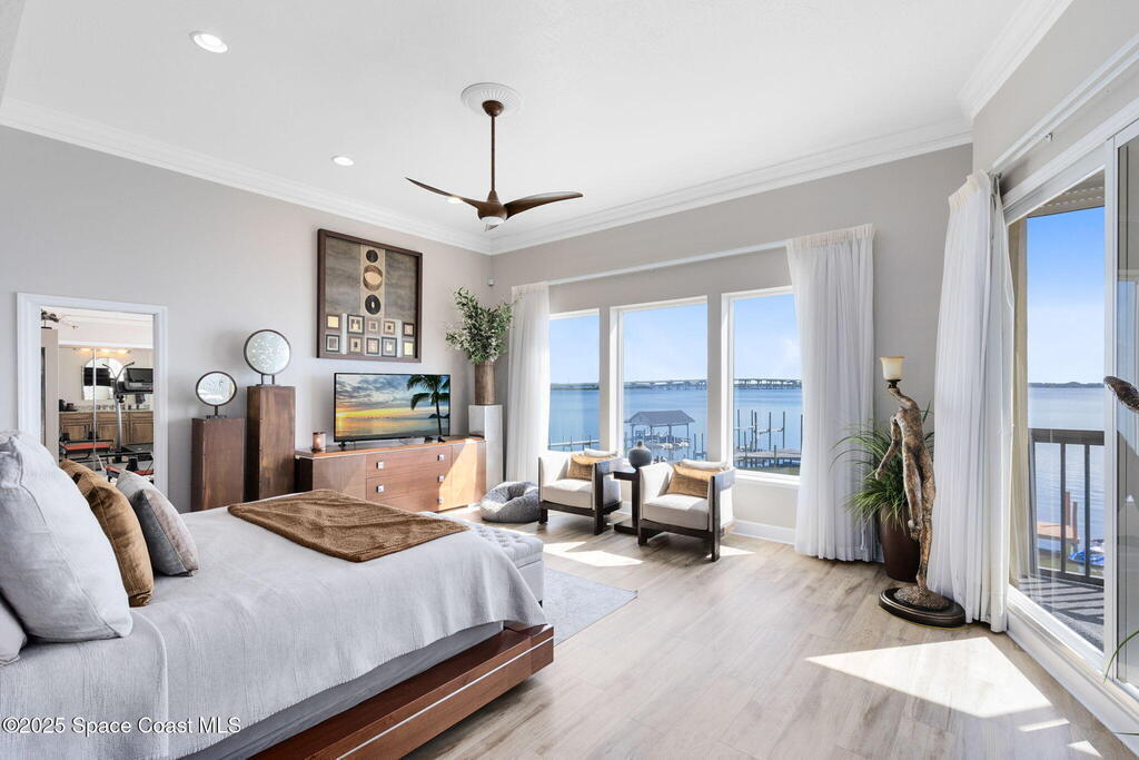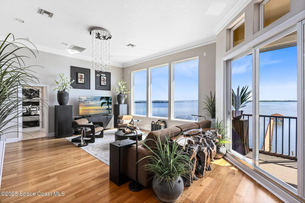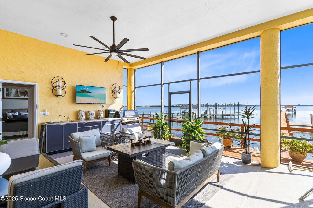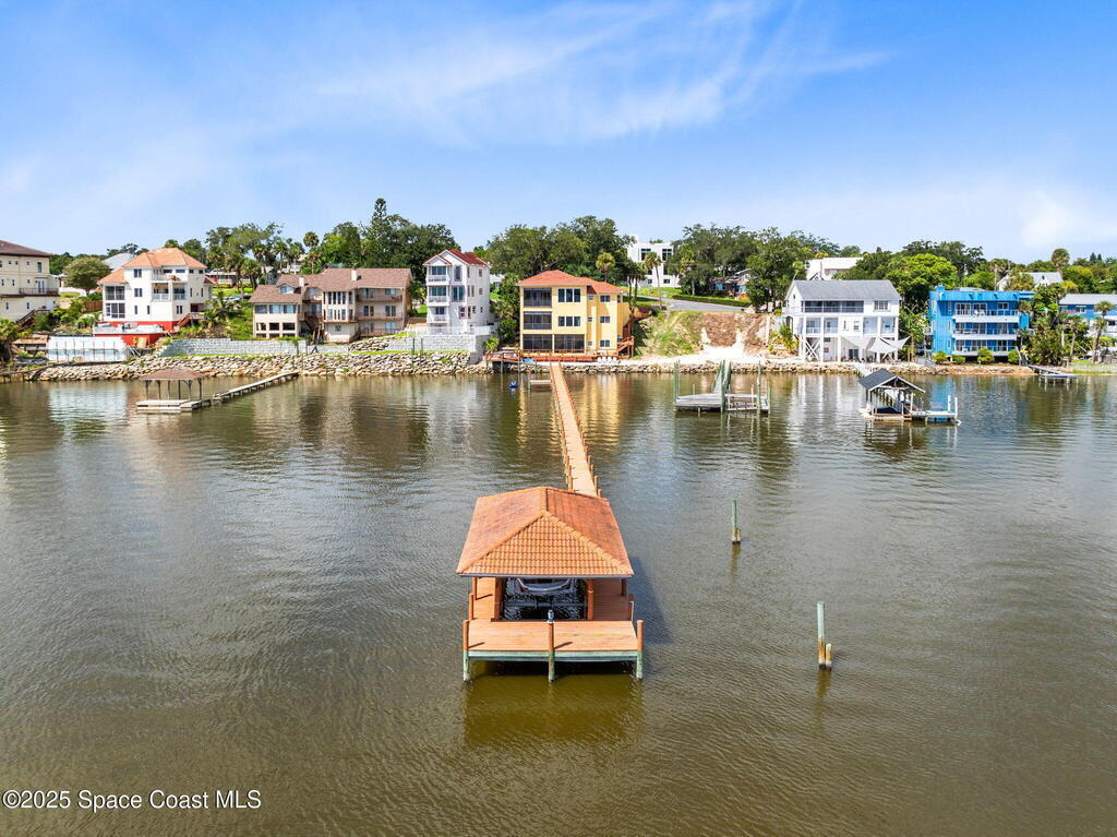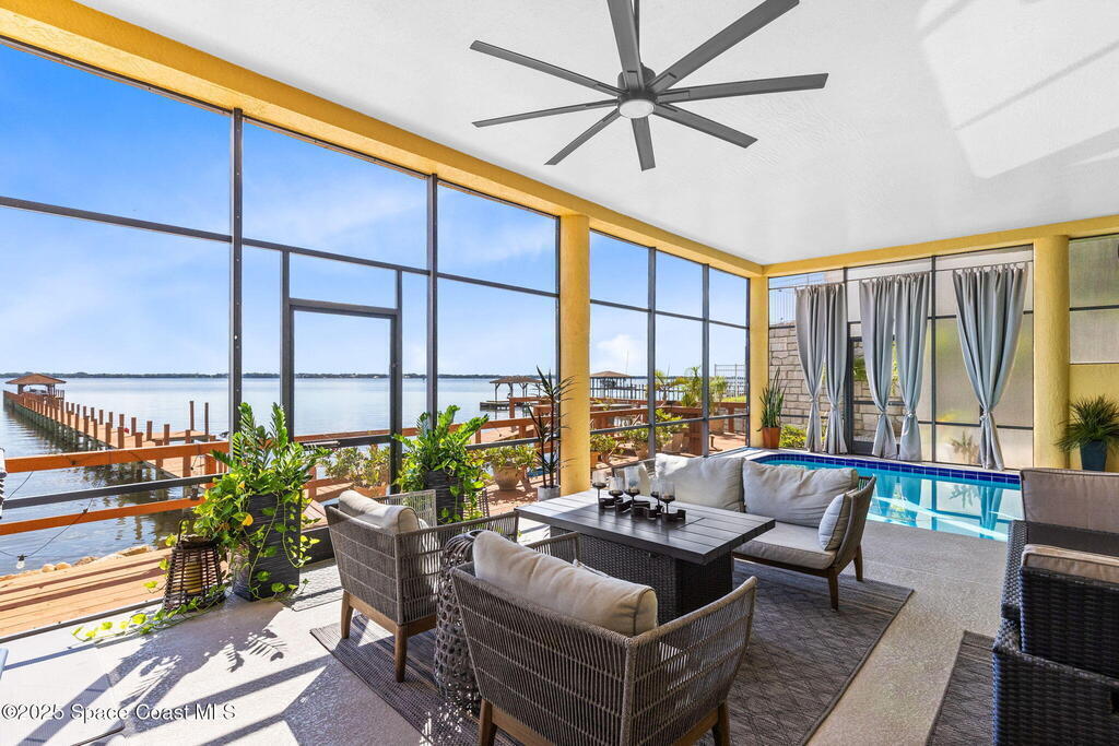 ''Currently under contract with a home-sale contingency. BACKUP OFFERS encouraged.'' Welcome to your riverfront sanctuary on the Indian River. This estate offers comfort, style, and panoramic views in a golf cart-friendly neighborhood just minutes from Cocoa Village, with beaches and Cape Canaveral only 10 minutes away. Enjoy a private dock and sandy beach for boating, paddleboarding, or fishing. A year-round indoor pool with floor-to-ceiling windows frames endless river views, while a theatre room is perfect for movie nights. Expansive glass walls, soaring ceilings, and custom finishes connect indoor luxury to outdoor beauty. Every room captures dolphins, sunrises, and rocket launches. Multiple screened balconies invite morning coffee or evening cocktails. The gourmet kitchen features top-tier appliances, and spa-inspired baths add to the retreat feel. The home includes a new generator and automatic hurricane shutters.