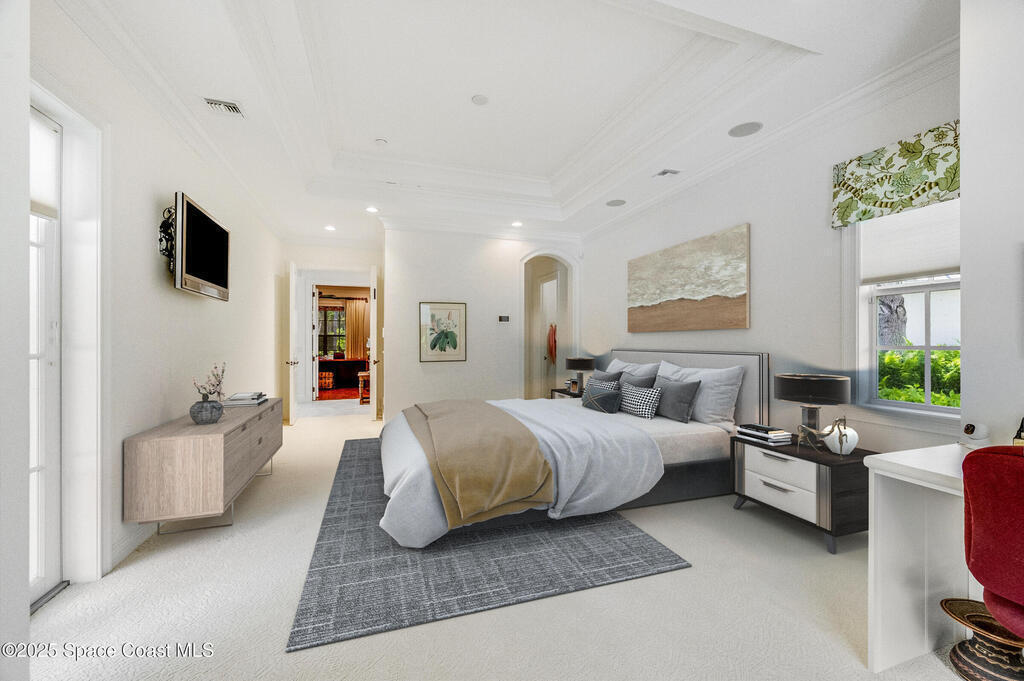 Beautiful Carriage home in Palm Island Plantation, blending West Indies architectural elegance with 'Old Florida' charm. Situated on an oversized lot, 3000 + sq ft, split plan, 3 ensuite bedrooms, half bath, 2019 standing seam metal roof, separate office, pool, and fireplace are only a few of the custom features.This river to ocean community has two (2) pools, (oceanfront & main), fitness center and a Beach Club. An open eat in kitchen features a sub-zero refrigerator, high end appliances, and beverage cooler, An additional dining area with abundant light cascades the shimmering pool and backyard view.