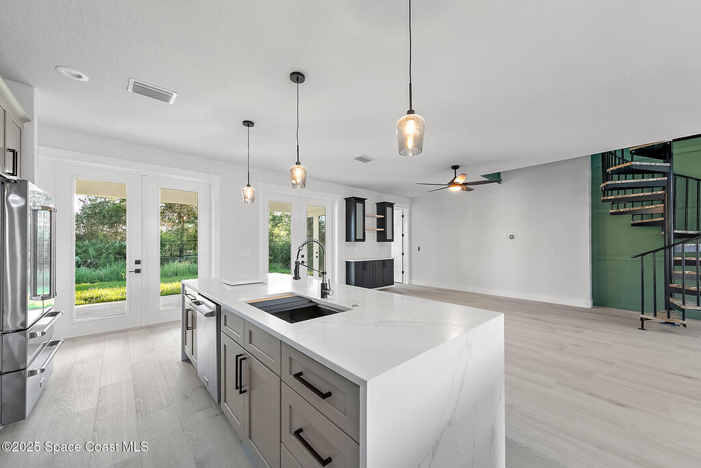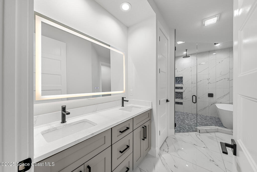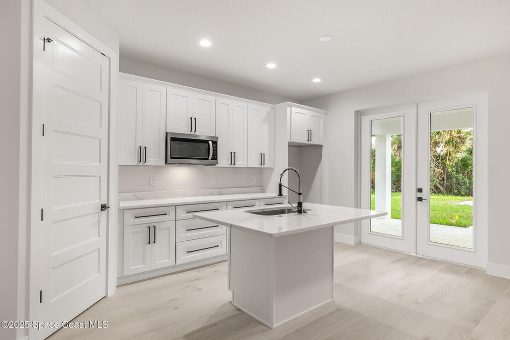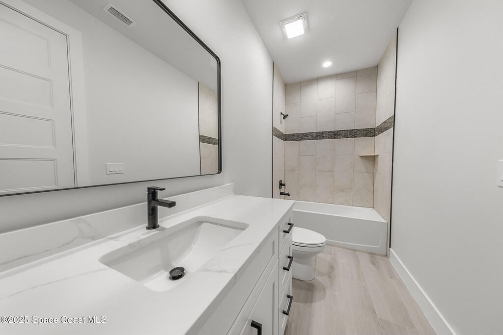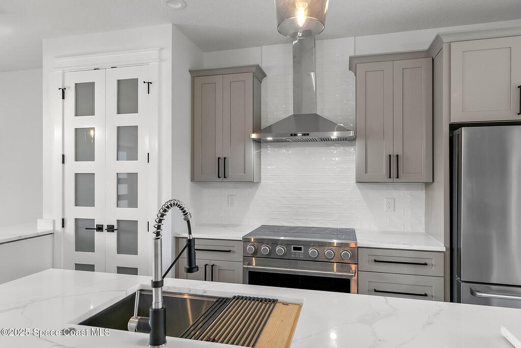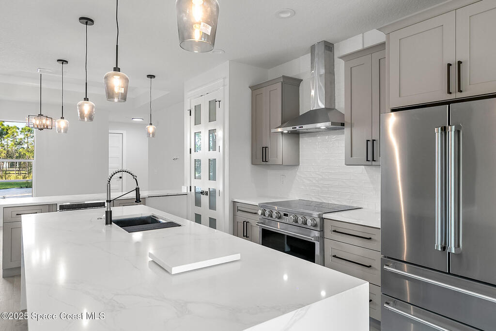 Looking for a Multi-generational home? This 2025 Brand new home was just recently completed. As you enter the home you're greeted with a large open floor plan containing the Family Room, Island Kitchen, & Dining. There is a 5th bed/office in the front of the house w/ windows facing the driveway. The master bed & bath is tucked away in the back corner of the house with shower & tub combo behind frameless glass is so luxurious. The 2 other bedrooms are on the opposite side with a jack & jill bath, each having their own private sink. The Laundry & Mud room separate the in-law suite from the rest of the house & also boasts a family room, kitchenette & full bath. This custom home is loaded w/ extras like 8' interior doors, Impact glass windows & doors, tray ceilings, 60'' x 10'' porcelain wood look tile throughout. Additionally there is a 400 sq ft 2nd story bonus rm w/ Full Bath. For the Hobbiest the Huge garage is a real treat!
