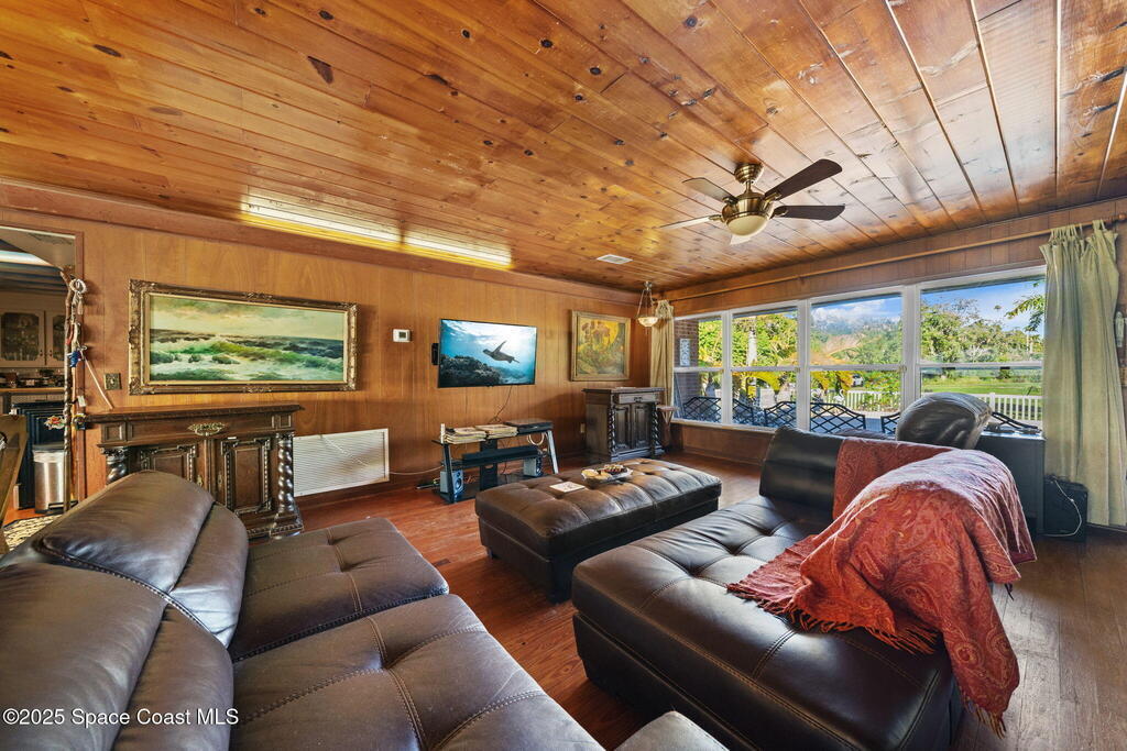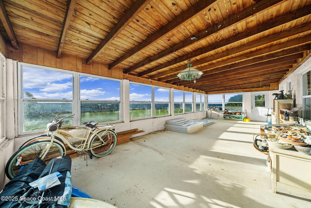 Experience breathtaking sunsets and vibrant waterfront living from this rare 4+ acre estate on coveted North Merritt Island. With 350 feet of direct Indian River frontage and a private dock, this property offers a unique connection to nature, private and secluded, yet with a front-row seat to the excitement of the booming space industry. Set at the end of a quiet street surrounded by lush tropical landscaping, this serene haven offers unmatched privacy and endless possibilities. Cruise from your backyard to nearby islands, dockside restaurants, or through the Canaveral Locks for a day of offshore fishing and adventure. The existing home is full of character and offered as-is, perfect for a peaceful retreat or as the ideal foundation to build your dream waterfront estate. With a gorgeous pool area and ample space to design a custom residence, imagine expansive river views, resort-style outdoor living, and sunsets that paint the sky in vivid color.