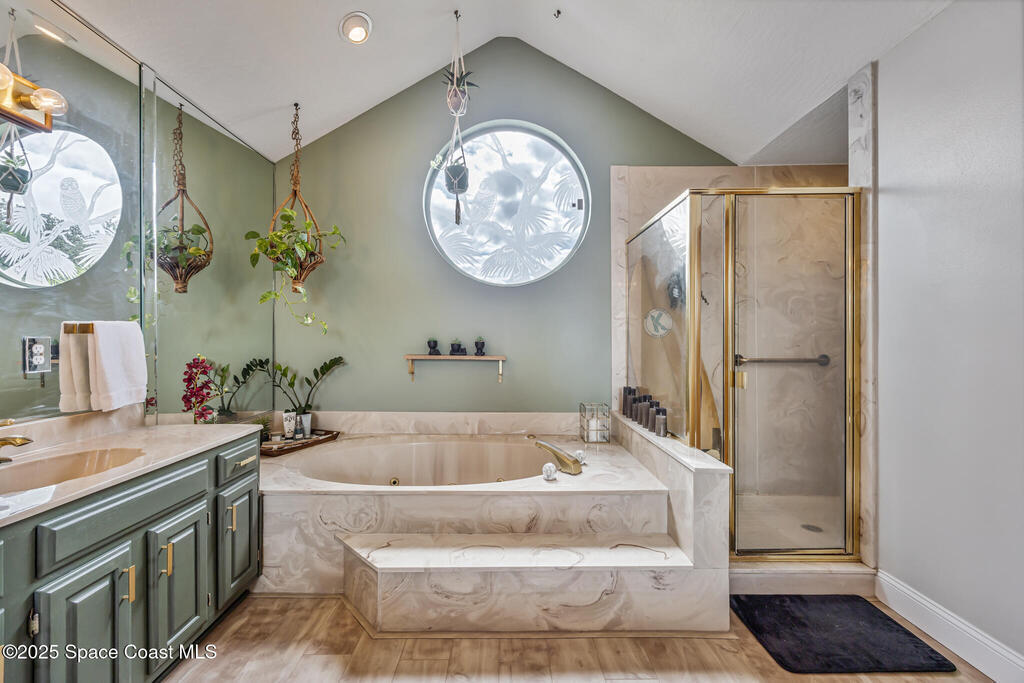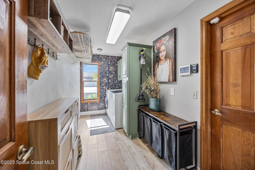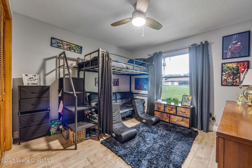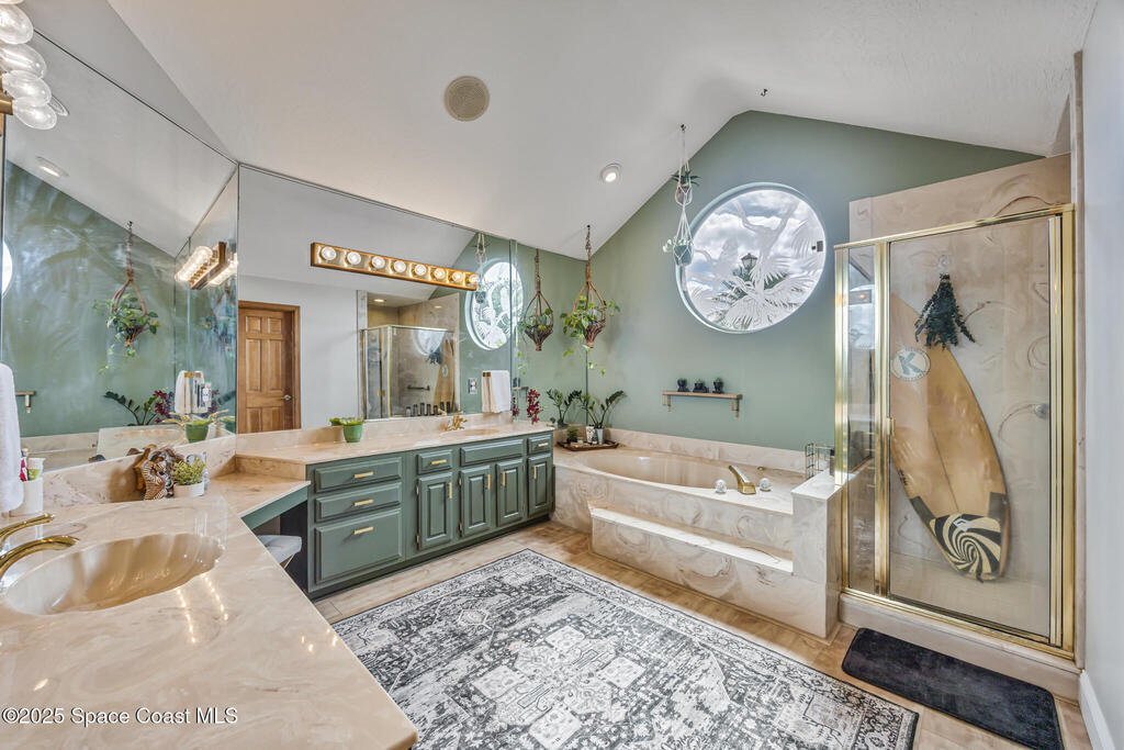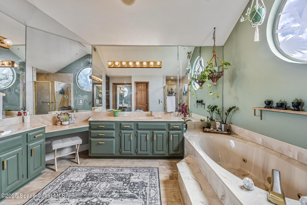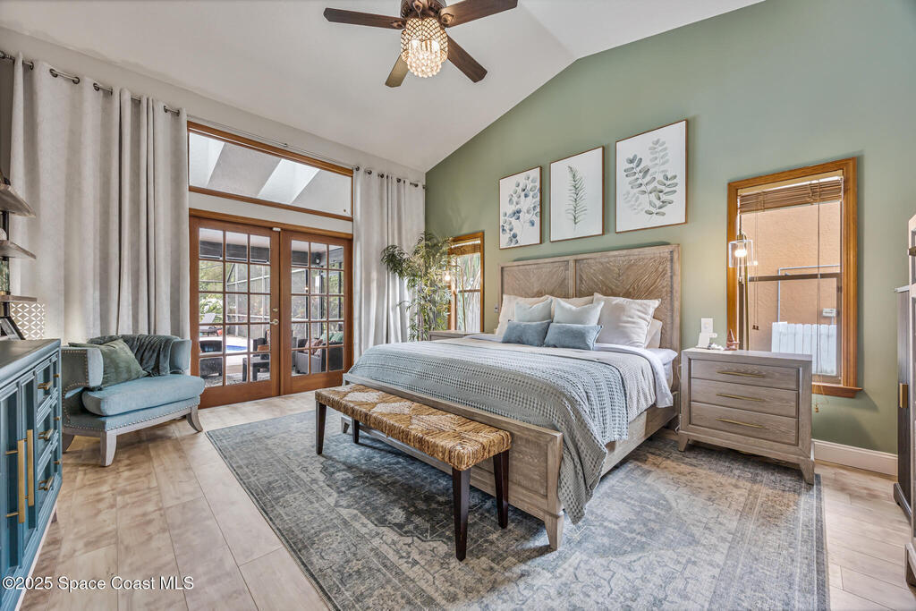 Beautifully updated 4-bed, 2-bath, 2,468 sq ft pool home in one of Suntree's most desirable golf-cart friendly neighborhoods, zoned for A-rated schools. Bright & open with vaulted ceilings, abundant natural light, & LVP flooring throughout. Two spacious living areas, including a family room with floor-to-ceiling stone gas fireplace, quartz hearth, & custom built-in cabinetry. The remodeled kitchen (2020) features two-tone cabinetry, quartz countertops, large island with deep drawers, gas Jenn-Air range, built-in wall oven/microwave, two double pantries, & bar wine fridge. Original wood doors and trim add warmth & character throughout. The large primary suite opens directly to the pool & offers a large walk-in closet & spa-style bath with dual vanities, jetted tub, w/separate shower. The three additional bedrooms are located on the opposite side of the home for privacy & shared bath with skylight.