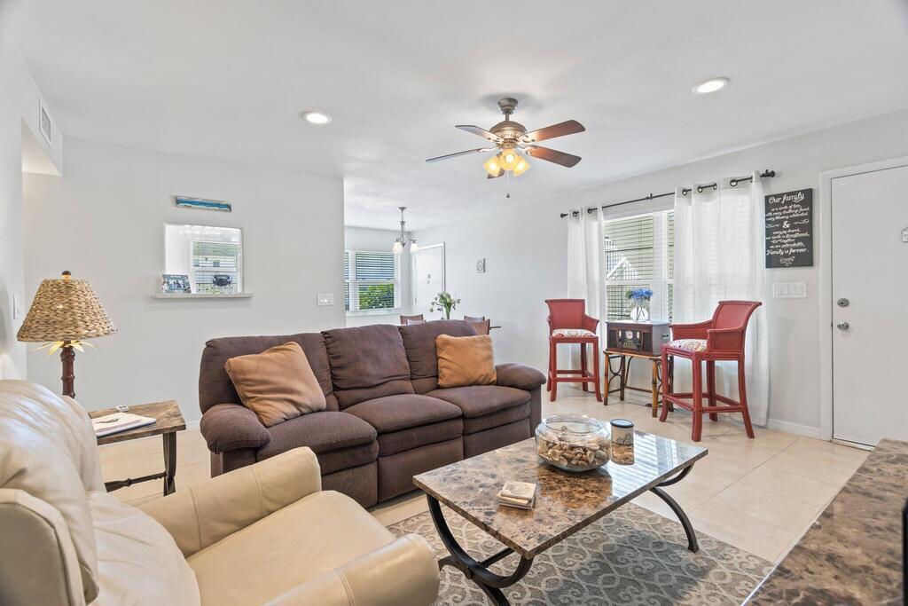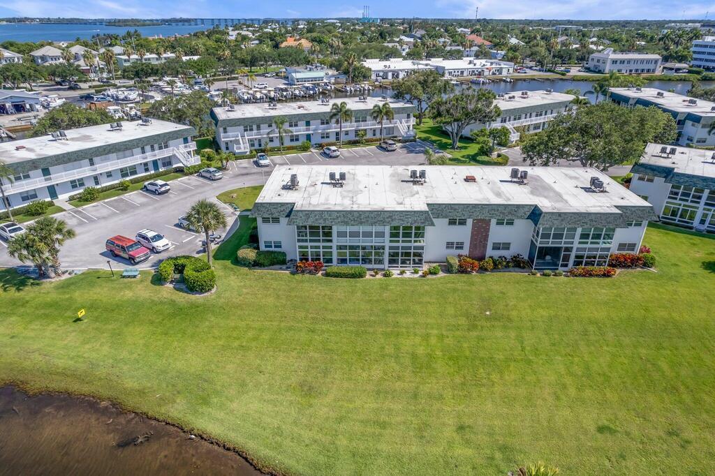 Enjoy water views from every room from this sought-after first floor 2/2 corner unit in desirable 55+ community! Updated kitchen and baths, tile floors throughout, impact windows. Community features pool, clubhouse, shuffleboard, dock for fishing/relaxing. Restaurants and specialty shops just around the corner on Royal Palm Pointe. Only minutes from the bridge and all the island has to offer...restaurants, museum, theater and beaches!