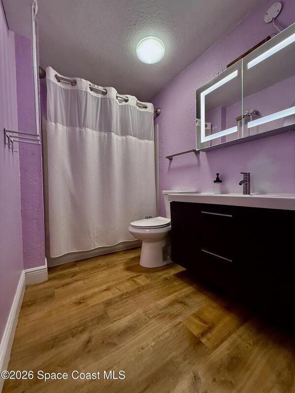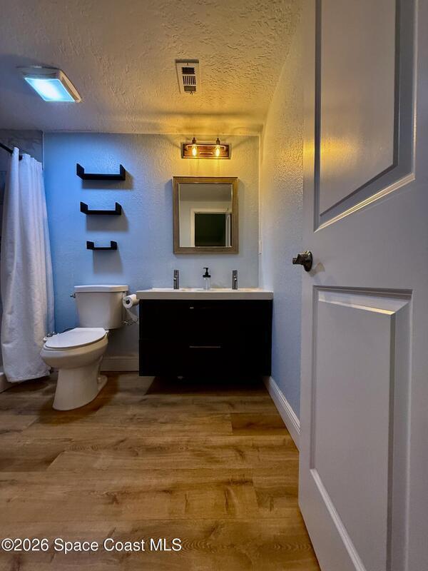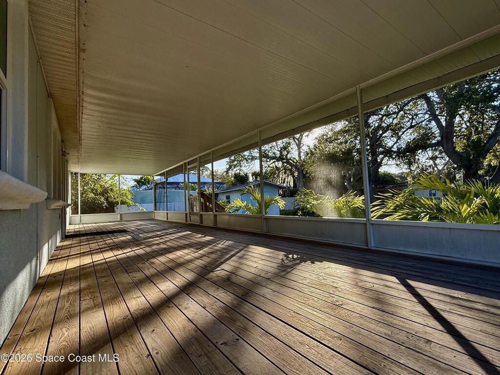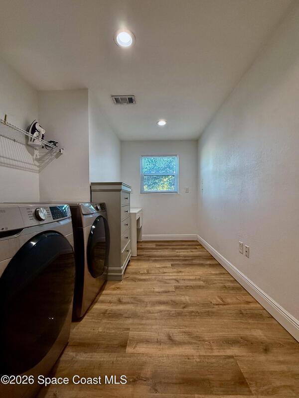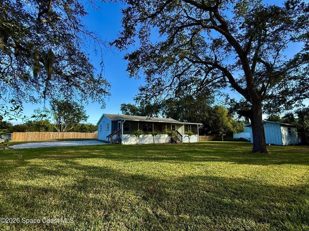In the heart of Merritt Island! This beautiful 4-bedroom, 2-bath home combines modern updates with classic charm. This home is built on elevated land and is a few feet above ground with a raised base. Every detail has been refreshed -- from the stunning kitchen and bathrooms to the trim, baseboards, and flooring throughout. The spacious layout offers comfortable living with natural light in every room. Step outside to your inviting screened-in porch, perfect for relaxing or entertaining while overlooking the oversized lot. With plenty of room for outdoor activities, a garden, or even a future pool, this property offers endless possibilities. Conveniently located near top-rated schools, shopping, dining, and just minutes from the beaches -- this hidden gem won't last long!