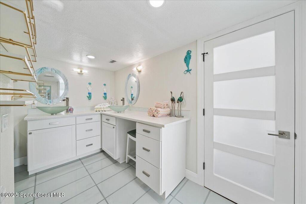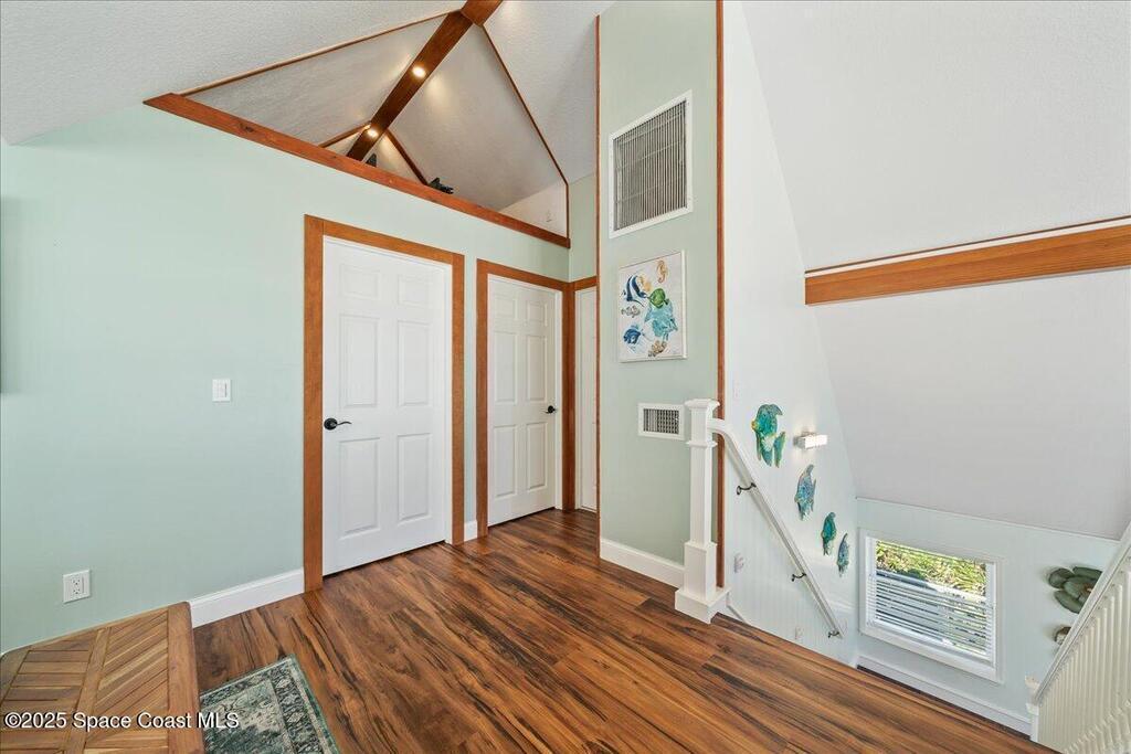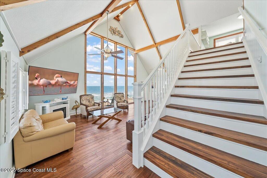 The ocean views from this stunning three story direct oceanfront home will impress! This house boasts 6 bedrooms/3.5 baths and new roof in 2021. It has two kitchens, a lofted office and options to lock off different suites to accommodate multi generational living and guests that visit.. There is a wall of floor to vaulted ceiling windows in the great room over the ocean that brings the ocean front and center and floods the space with natural light. It is such a bonus to have two kitchens and a layout like this that has one suite downstairs and another on the second and third level. A deep, wrap around balcony provides a perfect spot to relax and enjoy the scenery. The property offers direct access to quiet beaches, perfect for leisurely strolls and water activities. This home is ideal for a peaceful retreat on the coast. Long driveway and turn around make for easy access to A1A. Bike path across street from home goes on for miles and miles. Super quiet location in Melbourne Beach.