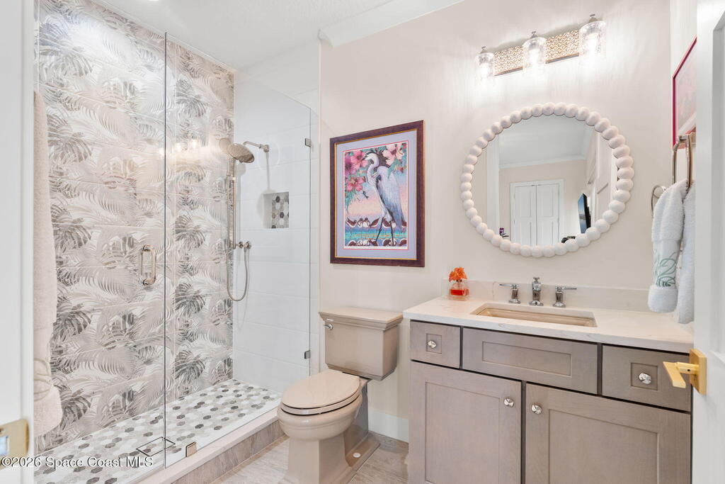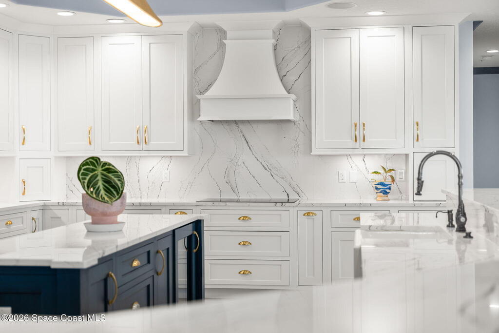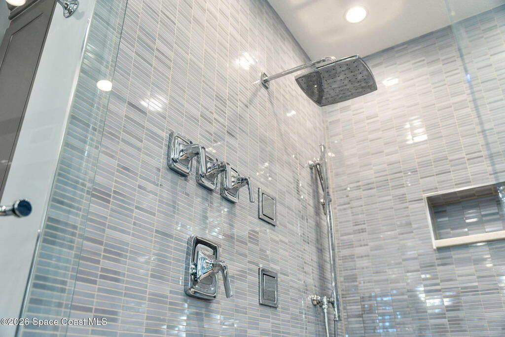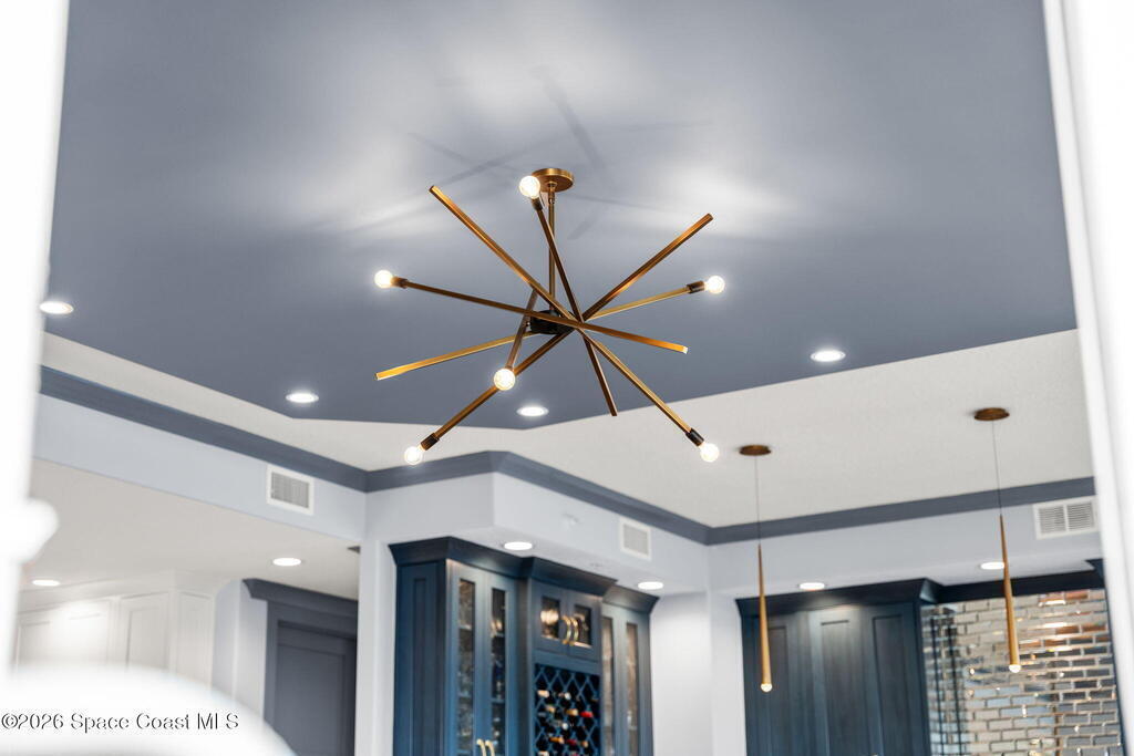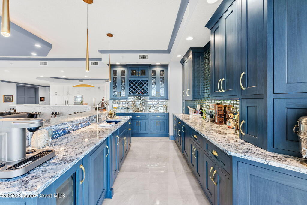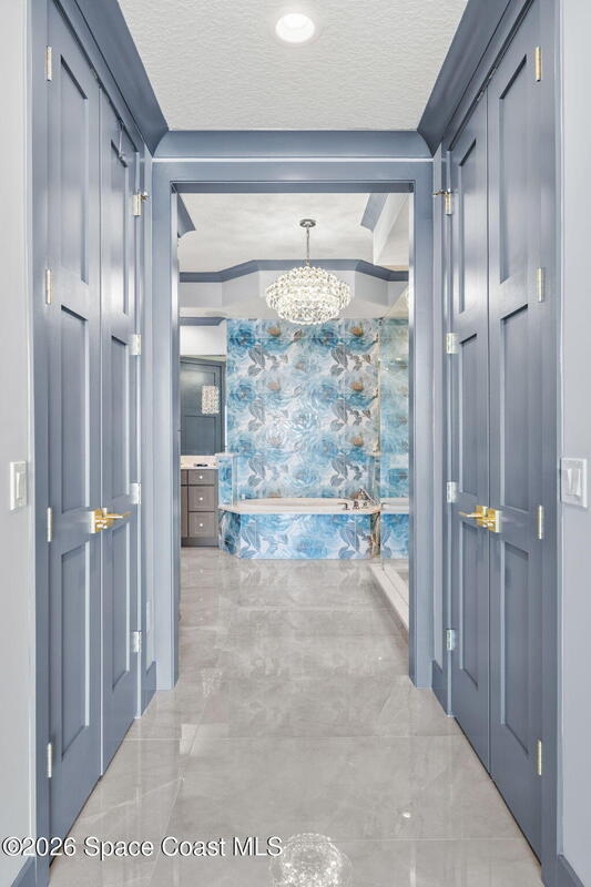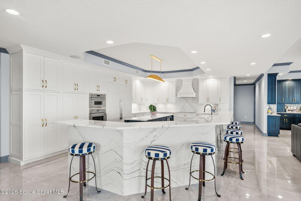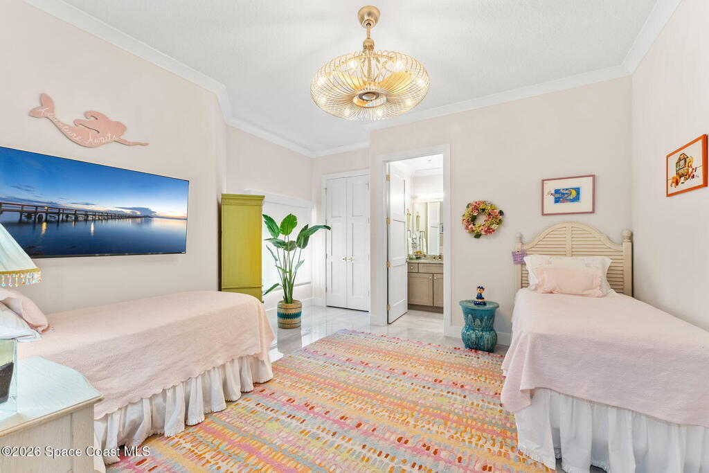 Experience elevated waterfront living in this stunning corner penthouse.This elegant home welcomes you with a beautiful hand laid marble floor highlighted by designer chandeliers lighting your way to a spacious open concept living area with floor to ceiling sliding doors.They showcase breathtaking views of the Indian River and rocket launches.The gourmet kitchen includes an induction cooktop and custom cabinets with pullout shelving.The master suite offers a private balcony, two walk-in closets, a shoe closet, spa bath, bidet and designer tile finishes. Two secondary en suite bedrooms, an office and art studio complete the living space.There are quartz countertops,electric window treatments,upgraded plumbing and light fixtures in every room.A see through fireplace separates the living and family areas. Sip your morning coffee watching beautiful sunrises or enjoy cocktails from your full bar with pull out shelves and its own refrigerator, freezer, wine cooler and nugget ice maker.