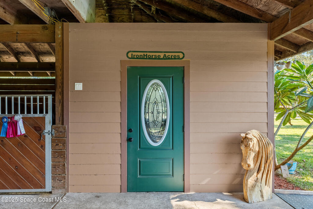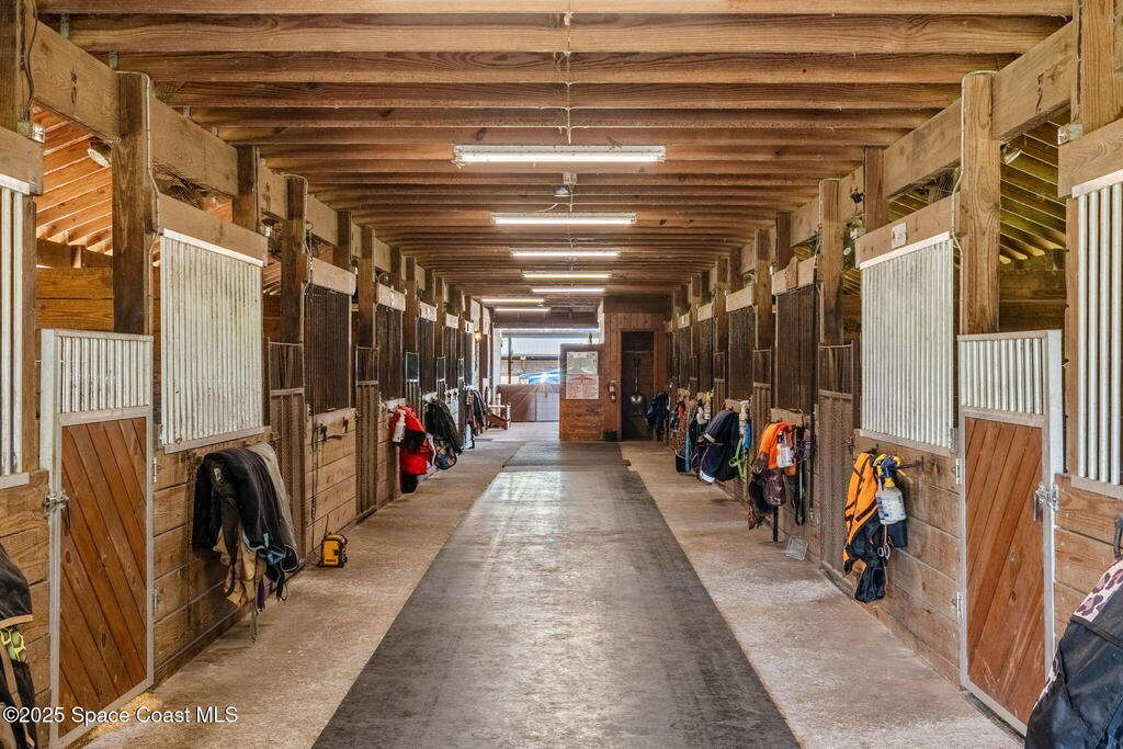 Welcome to a rare, turnkey Equestrian Estate in the heart of the Space Coast. Situated on approximately 9+ fully fenced acres in rural Cocoa, this professionally equipped horse facility offers the ideal blend of residential comfort and commercial-grade functionality.The property is thoughtfully designed for serious equestrian use, featuring 20+ well-appointed stalls with automatic waterers and fans, a 100' x 200' lighted riding arena, a 60' round pen, multiple fenced pastures with no-climb and electric fencing, a wash rack, feed and hay storage areas, a tack room with lockers, trailer parking, and additional equipment/hay barns. A custom-built office within the barn complex provides operational convenience for boarding, training, or lesson programs. Zoned agricultural and free from HOA restrictions, this property presents exceptional flexibility for equestrian professionals, ranch operators, or buyers seeking a private rural lifestyle with income potential.