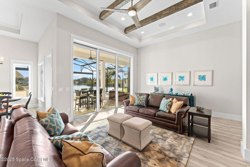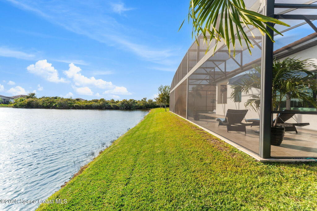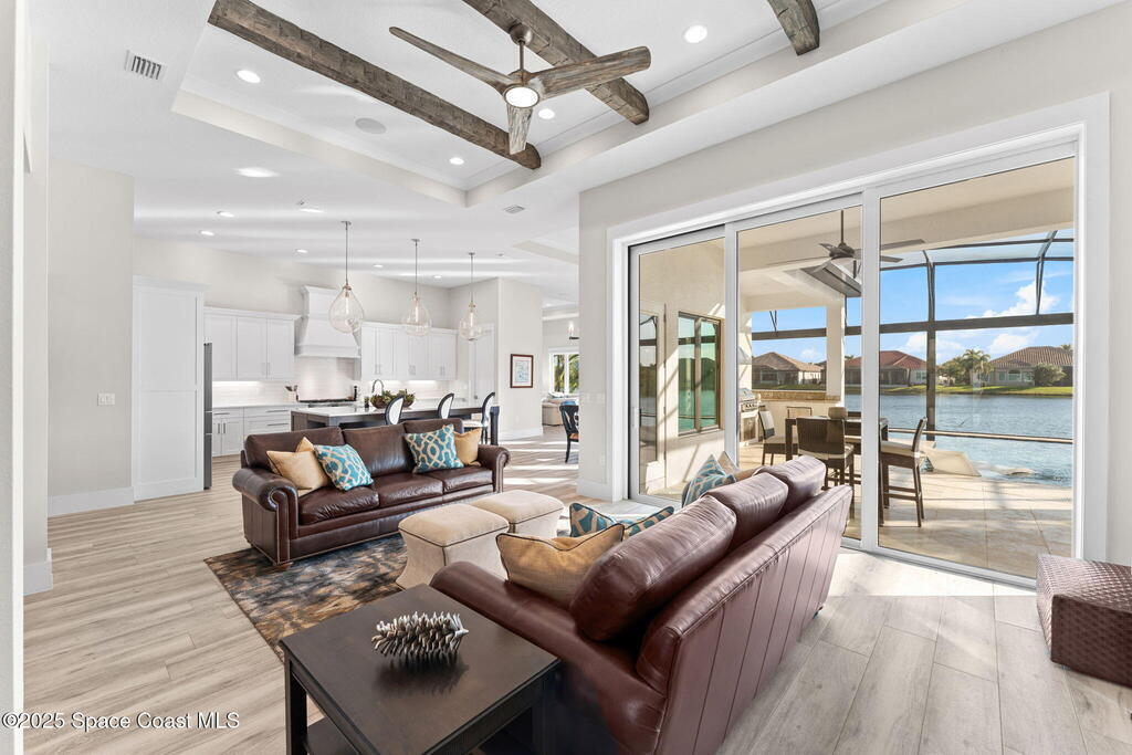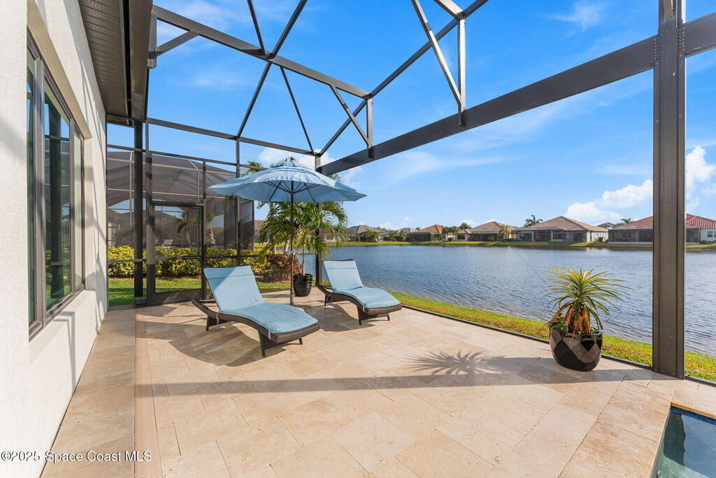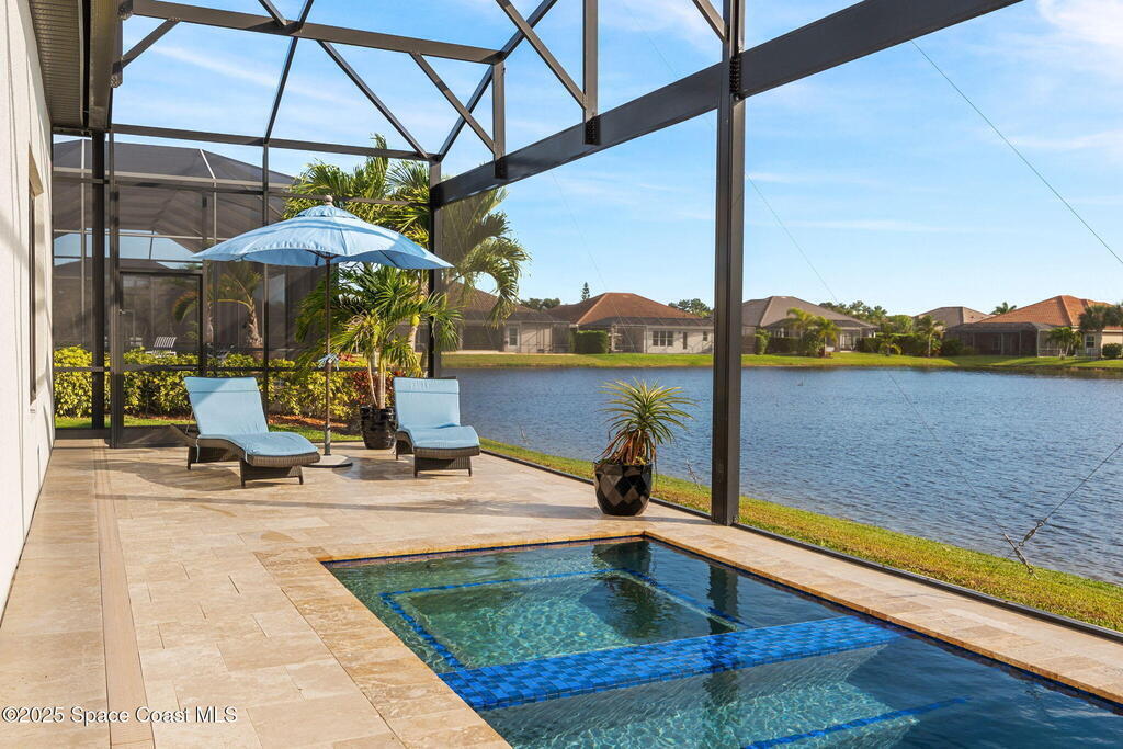 Experience this stunning Santa Rosa floor plan home featuring 3 bedrooms, a study, 3 baths, and a spacious 3-car garage. Built by one of Brevard's most reputable long-standing builders, this residence showcases quality throughout with 8' sliders, an elegant front door, wood-look porcelain tile flooring, a tile roof, soaring 10' ceilings, and tray ceilings. The gourmet kitchen offers 42'' cabinetry, a large island, quartz countertops, tile backsplash, a pantry, and upgraded stainless-steel appliances. The open layout includes two living areas filled with natural light from expansive sliders leading to the impressive screened outdoor oasis. Enjoy a resort-style pool with sun shelf, built-in loungers, tile accents, and a spacious travertine deck perfect for entertaining. The covered lanai features multiple seating areas, ceiling fans, and a full outdoor kitchen with a built-in grill. Gas is pre-piped to the lanai for easy outdoor cooking.