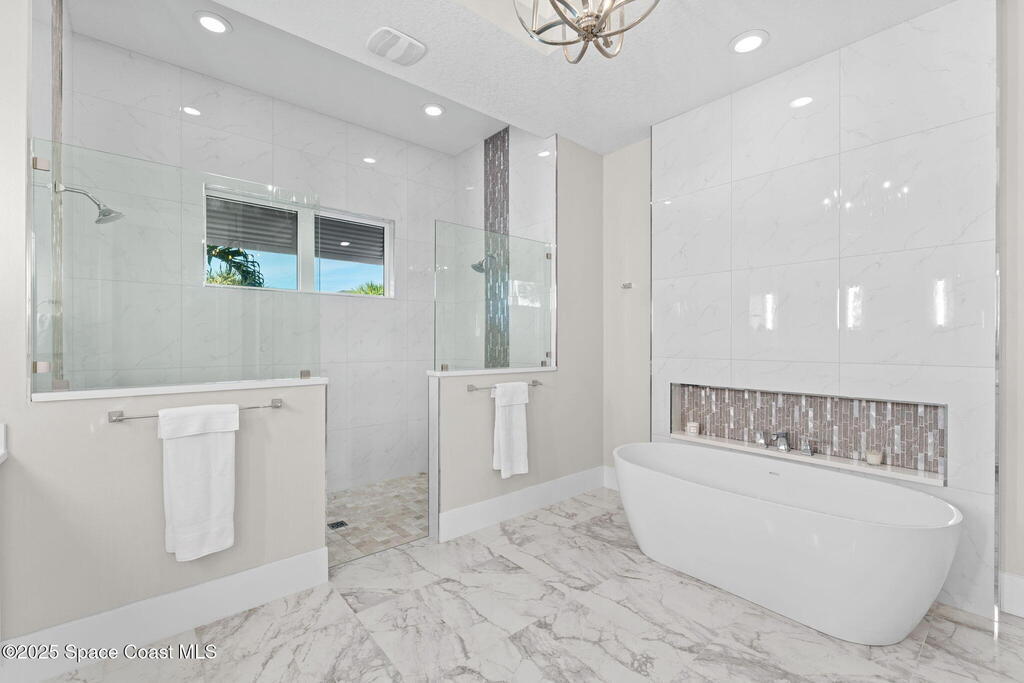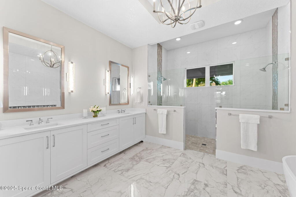 - Interior Features: Breakfast Bar, Breakfast Nook, Ceiling Fan(s), Entrance Foyer, His and Hers Closets, Kitchen Island, Open Floorplan, Pantry, Primary Bathroom - Tub with Shower, Primary Bathroom -Tub with Separate Shower, Primary Downstairs, Split Bedrooms, Vaulted Ceiling(s) and Walk-In Closet(s)