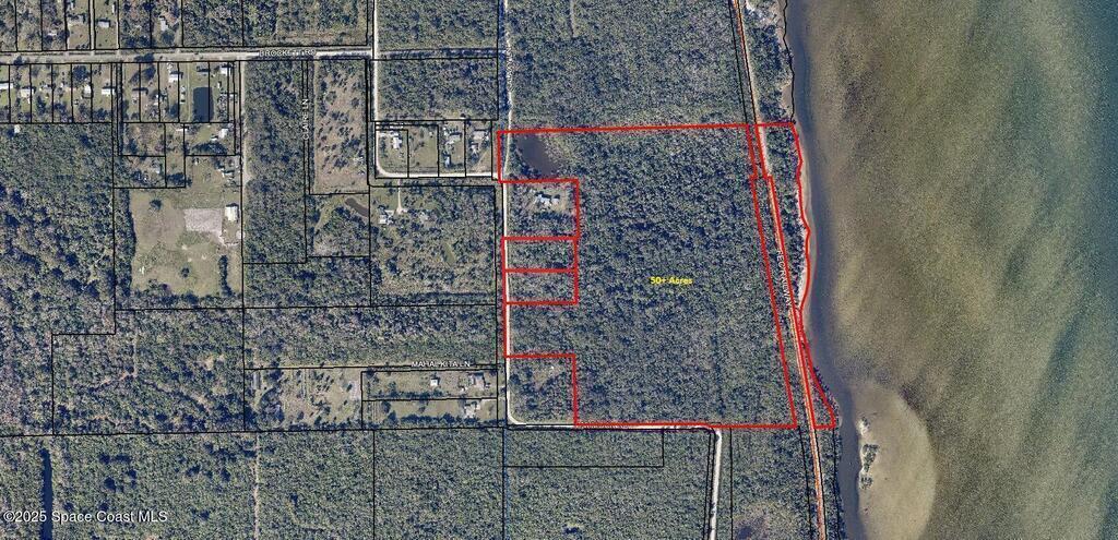 Rare opportunity to acquire approx. 50.7+/- acres consisting of three contiguous buildable parcels with over 1,500 feet of frontage on the Indian River Lagoon in North Brevard County. The property is wooded and offers a unique mix of uplands, natural buffer, and riverfront land, providing exceptional privacy and long-term upside. The riverfront portion is accessible by water today, with future land access possible by installing a railroad crossing or securing an easement, allowing for a private dock or river hangout area. Zoning includes AU (Agricultural Residential) and TR-2, permitting rural residential homes, family compounds, hobby farms, agricultural uses, and potential future subdivision. The land is currently configured as three buildable parcels and may be further subdivided subject to county approval. Electric is available at the road, and the size, frontage, and flexibility make this property ideal for a family compound, recreational retreat, investment or development.
