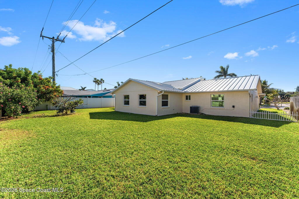 Feel the sea breeze & hear the waves - this beautifully reimagined 3 bed, 2 bath beachside home offers relaxed Florida living with a fresh, modern vibe. Inside, a soaring cathedral ceiling & travertine floors define the open-concept great room, which seamlessly blends the living, dining, & kitchen spaces. The stylish kitchen features granite countertops, stainless appliances, & a layout perfect for everyday living or entertaining. Just off the back, a spacious family room offers added flexibility for work, play, or media. The oversized fenced backyard provides room to play, add a pool, or simply enjoy the Florida sun. Peace-of-mind upgrades include a 2020 standing seam aluminum roof, impact-rated windows & doors, reinforced gables, blown-in insulation, a 2024 HVAC system, & a generator connection. Located in a quiet, established neighborhood with no HOA, just a few minutes' walk to Peacock Beach & under an hour to Orlando. This coastal retreat is move-in ready and full of possibility.