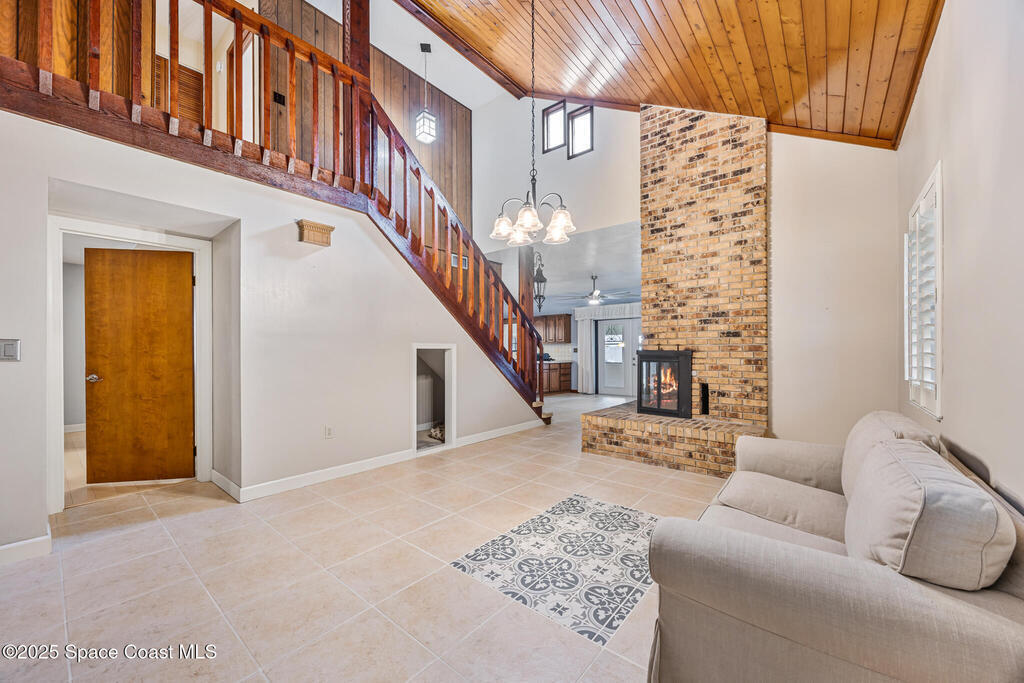 This distinctive Cocoa property offers space, character, and craftsmanship, set on over an acre of land. This cedar and brick home offers a warm, rustic-meets-classic feel that immediately stands apart. Inside, a is a unique space offering a versatile loft ideal for a home office, or additional living space. Thoughtful storage is found throughout the home, making it both functional and flexible for a variety of lifestyles.Step outside to an expanded screened deck featuring a sparkling pool, perfect for year-round entertaining, relaxing, or hosting gatherings. A detached shed adds additional storage or workspace, as well as a large, covered RV and boat parking.Offering privacy, space, and architectural character, this property is conveniently located near KSC and commuter routes while still feeling like a peaceful escape. A home designed for those who want something beyond the ordinary, with room to live, work, and play.