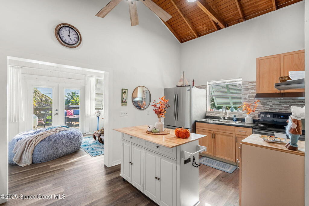- Interior Features: Ceiling Fan(s), Guest Suite, Kitchen Island, Primary Bathroom - Shower No Tub and Vaulted Ceiling(s)