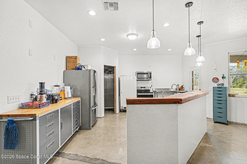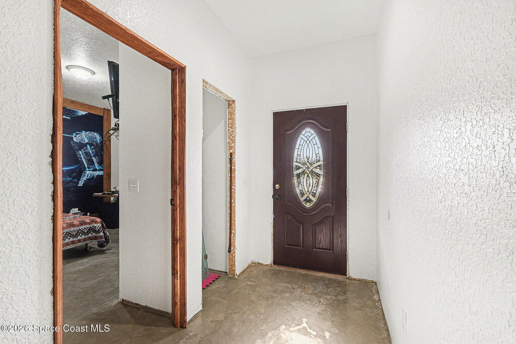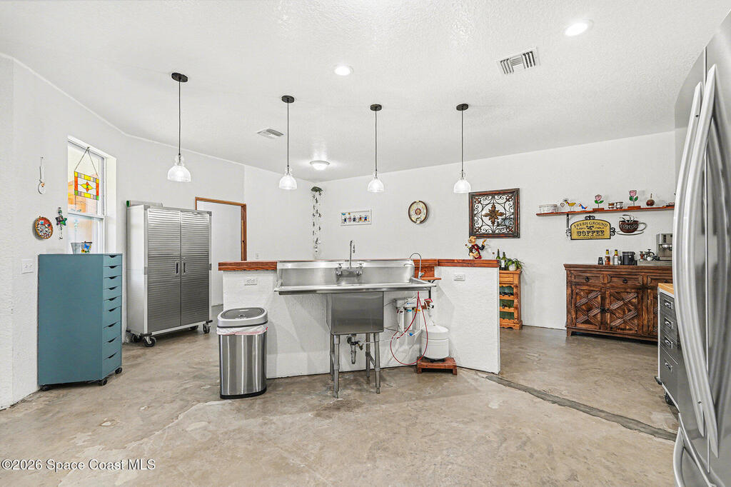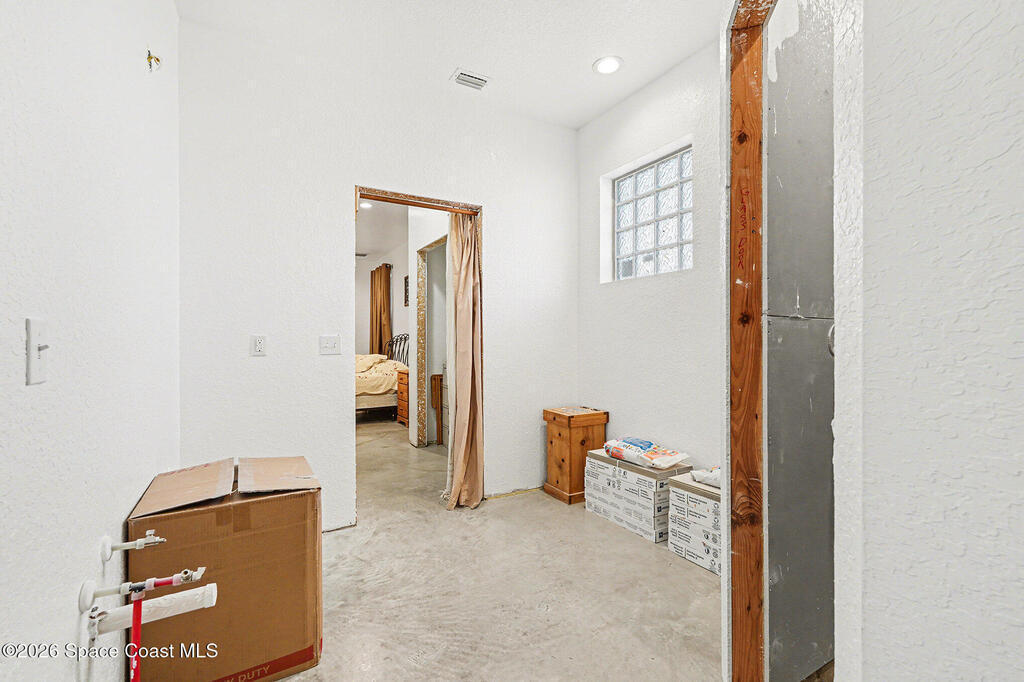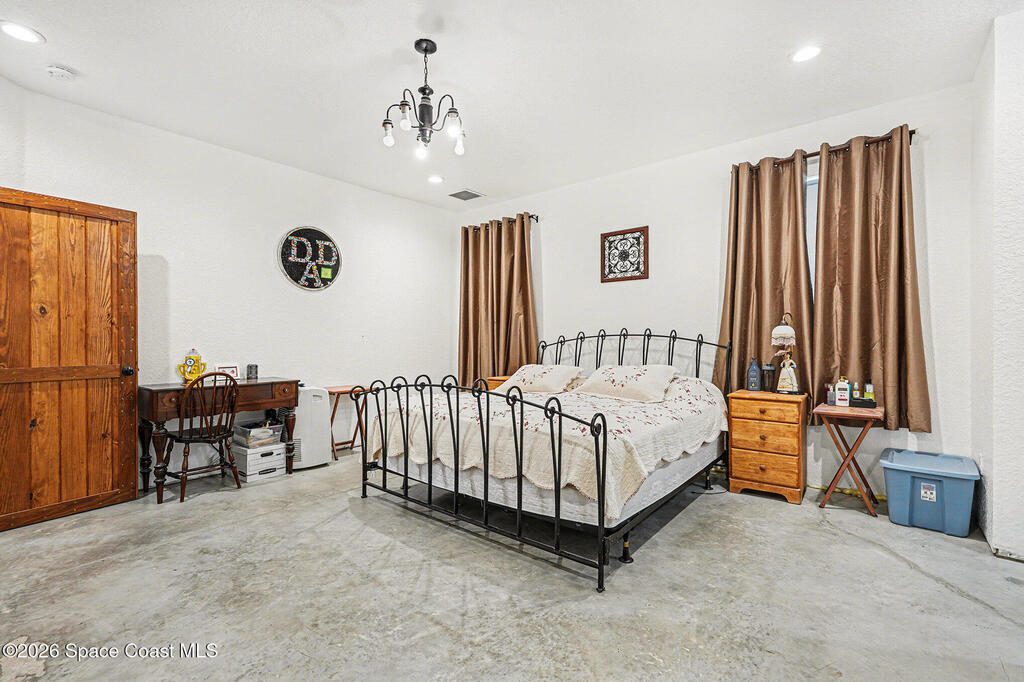 Multi-Generational Living meets the Space Coast at 4960 Dixie Way, Mims, FL 32754. Built in 2019 on nearly 4 acres in Brevard County, this CBS concrete-block home with two private-entrance wings plus a central connecting entry. Approx. 6,000 SF total (about 3,825 SF under air + ~1,800 SF commercial-style garage). The garage has 12-ft ceilings, concrete floors, abundant storage, and space for 8+ cars with an auto-lift setup--perfect for boats, ATVs, and toys. Enjoy rocket launches from the property and a ~350 SF patio plumbed for an outdoor kitchen. South wing: family room, 3 beds, 2 baths, office/guest room, kitchen/dining. North wing: family room w/ wet-bar, 1 bed, 1 bath, bonus room, kitchen/dining. Perfect for pool, gardening, animals and lots more. Near Space Coast beaches/waterways for boating & fishing, plus easy access to Orlando and Daytona. Home has 200 amp and upgradeable. 4 clean outs. This is a must see!
