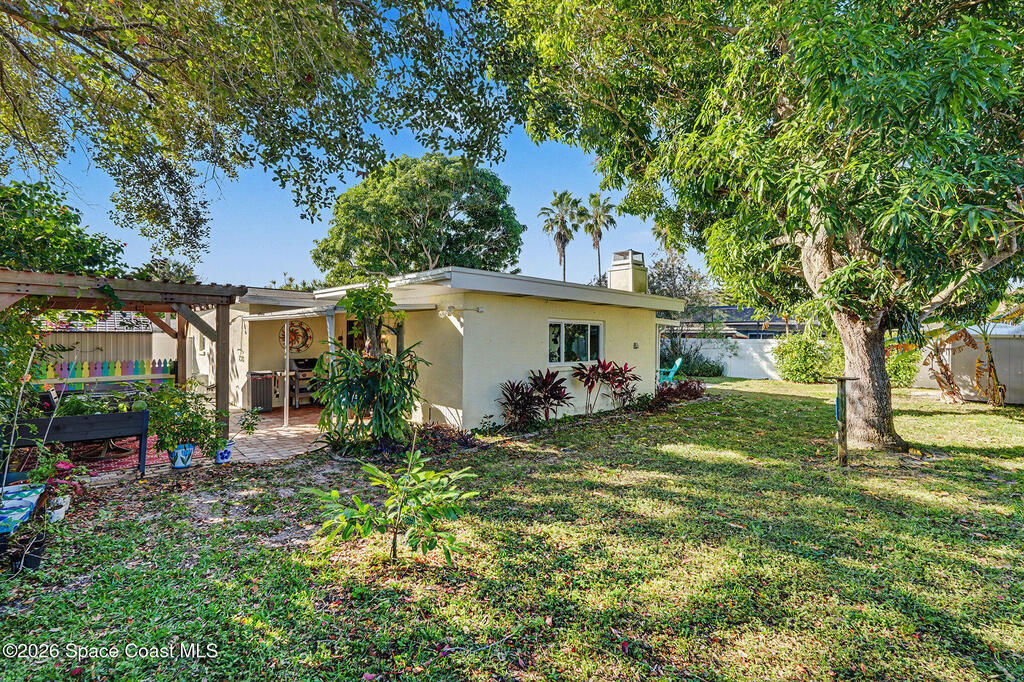 Just steps from the sand with beach access at the end of the street, this fully updated 4-bedroom, 2-bath Cape Canaveral home offers the best of coastal living with modern upgrades throughout. The full kitchen was remodeled one year ago with new cabinets, countertops, appliances, an induction range with air-fryer mode, and new flooring. Hurricane-impact windows and plantation shutters provide style and peace of mind, while the roof is approximately 6 years old. The primary suite was beautifully remodeled two years ago. Outdoor living shines with two new patios, outdoor shower, an arbor, updated vinyl fencing, and two sheds. The lush yard features fruit trees including fig, black sapote, banana, papaya, orange, cherry, and mango. Weekly rentals are permitted--making this an exceptional beachside retreat or investment opportunity.