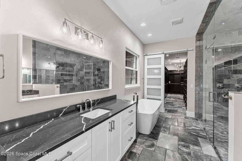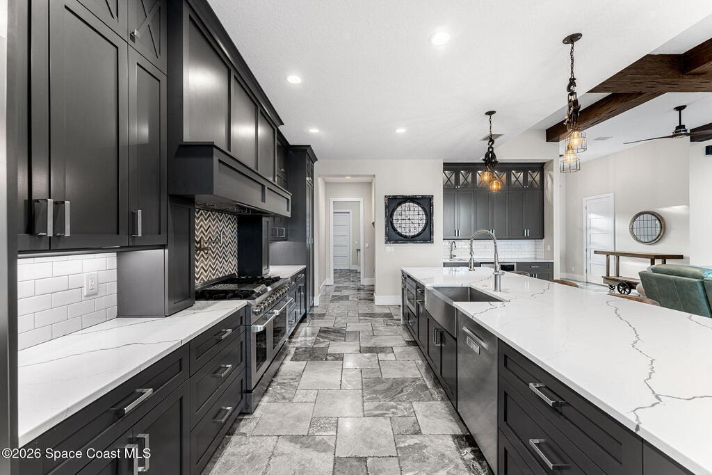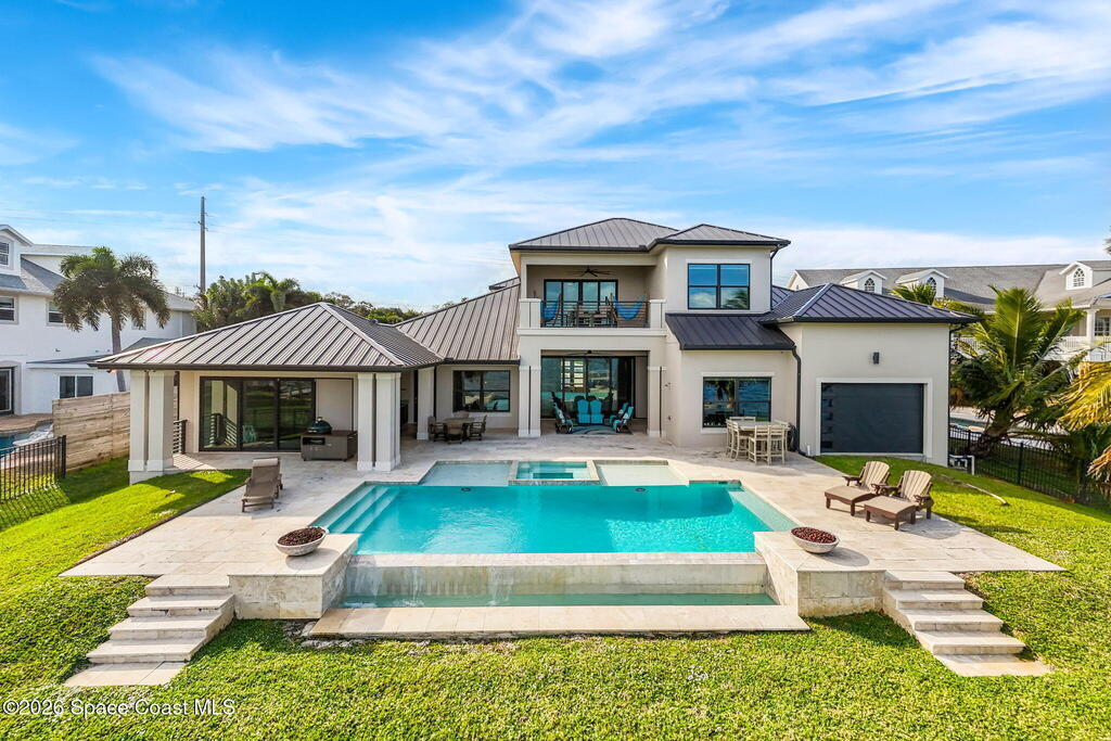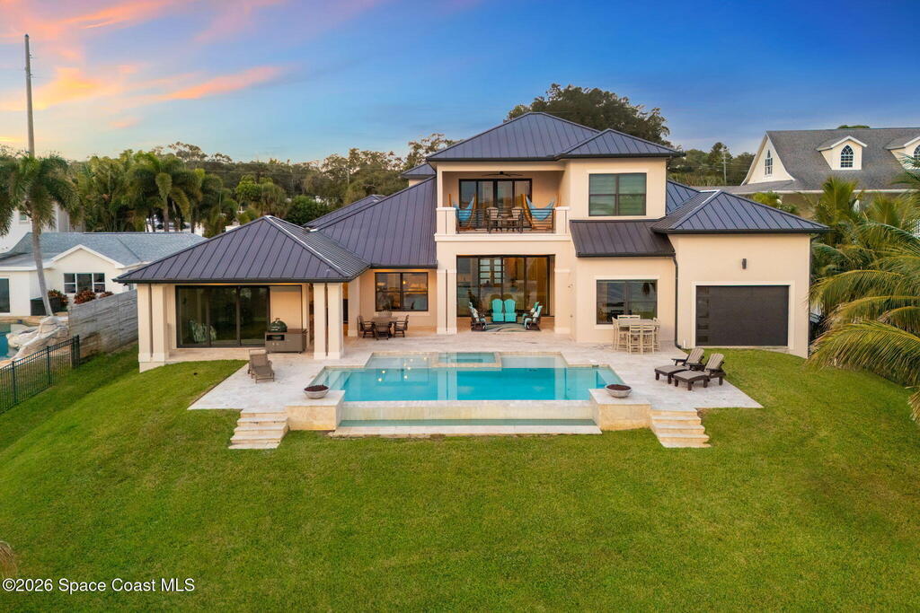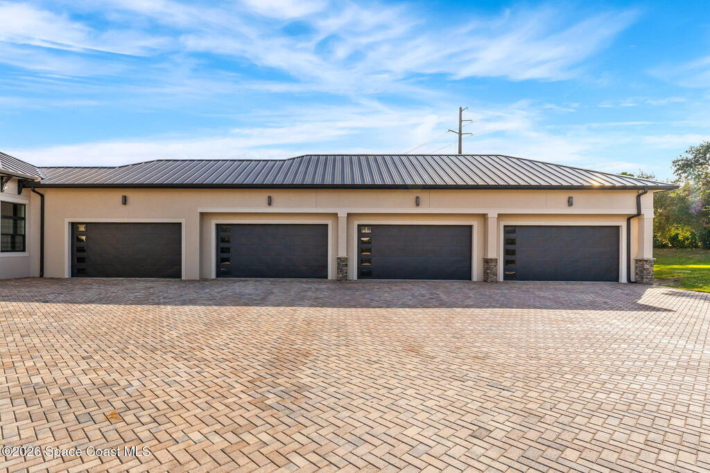 The ultimate private classic car showroom and motorcoach retreat. Stunning custom riverfront home w/ 8-car garage plus 10,000 lb tandem lift for your curated vehicle collection, additional high-clearance, 55 ft RV/boat garage w/ full hookups. A mariner's paradise w/ 110 ft open water frontage, a granite rock shoreline, and direct views of the intracoastal river. Custom dock w/ 2 lifts to accommodate up to a 30 ft boat with shore power. Enhanced solid poured concrete exterior, freshly painted and sealed, 5 bed 4.5 bath home w/ infinity edge saltwater pool and built-in spa, summer kitchen w/ custom Kalamazoo cabinetry and marine grade stainless steel grille. Impact sliding glass pocket doors w/ expansive river views, custom imported marble floors. Primary suite w/ custom walk-in steam shower and a freestanding soaker tub, and a massive walk-in closet leading to the laundry room. Chef's kitchen w/ 15 ft quartz island w/ waterfall edges, but the hidden butler's pantry steals the show.