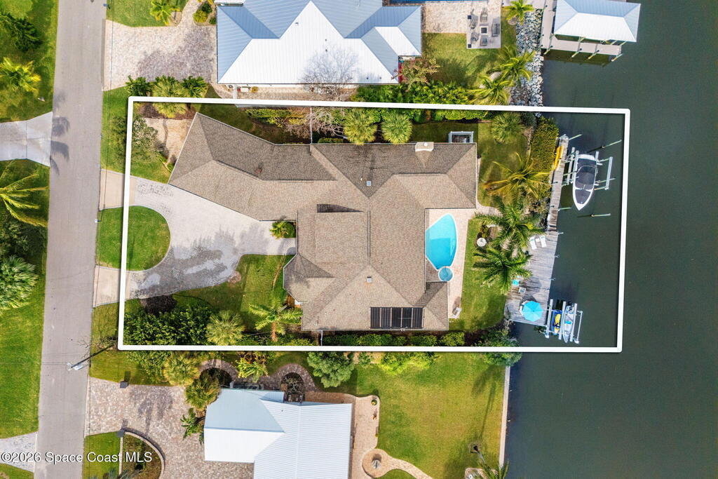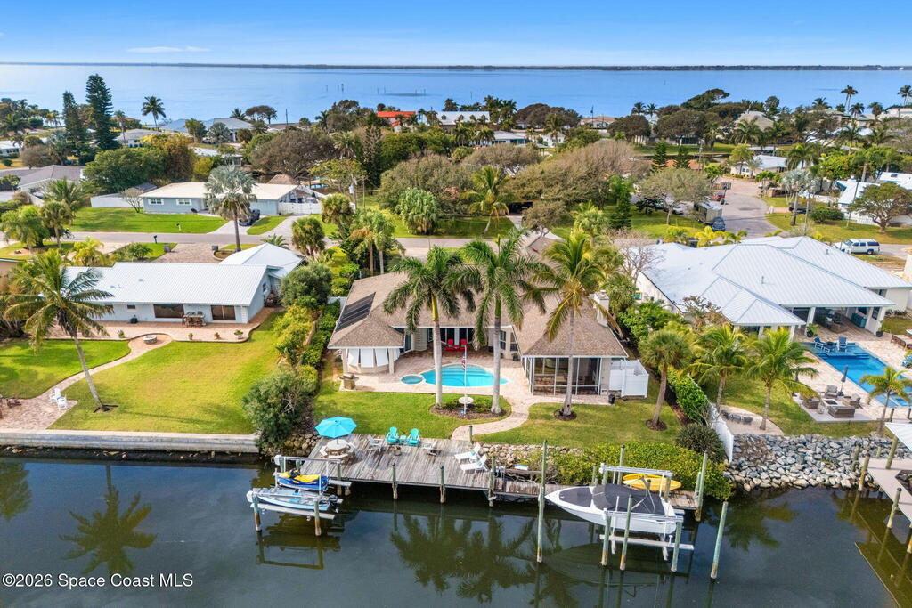 WIDE-CANAL WATERFRONT LIVING in Cocoa Beach. This 3 bed, 3 full bath home + office is positioned on a DEEP, OPEN CANAL offering exceptional maneuverability & boating functionality. The office, located near a full bath, provides flexibility as a potential 4th bedroom. Inside features include 12-ft ceilings, an open & livable floor plan, impact-rated sliders, water views throughout, & retractable front door screens. 12' ceilings in main living areas, 10' ceilings in other rooms. The kitchen offers cork flooring, under-cabinet lighting, a warming drawer, large pantry, a 5-burner induction cooktop, convection & combi-steam wall ovens, dishwasher drawers (vs standard dishwasher), & a gas water heater. Outdoor living includes a screened patio w/ refrigerator, sink, & pre-plumbed connections for an outdoor kitchen, built-in Sonos speakers, pool (refinished 2022) & spa. The dock is equipped w/ 2 boat lifts (9,000 lb & 16,000 lb), underwater fish lights, & 30-amp shore power.