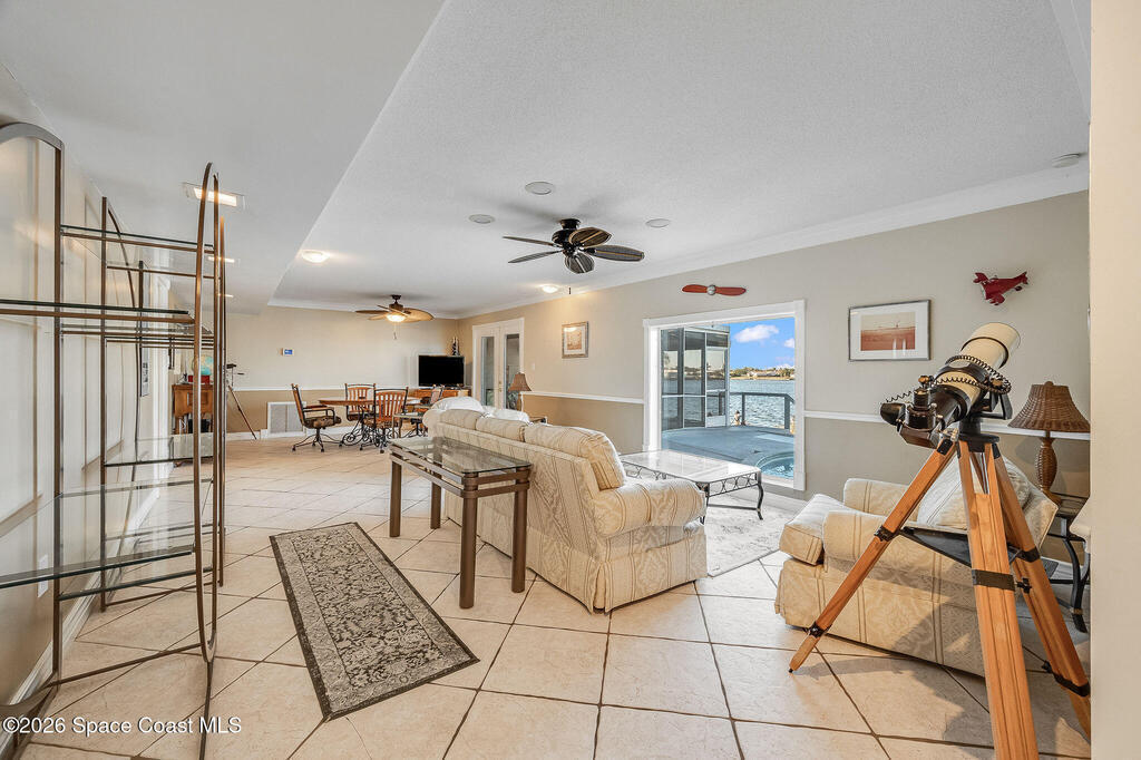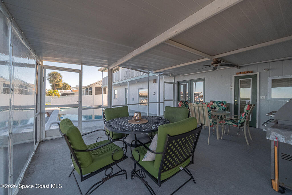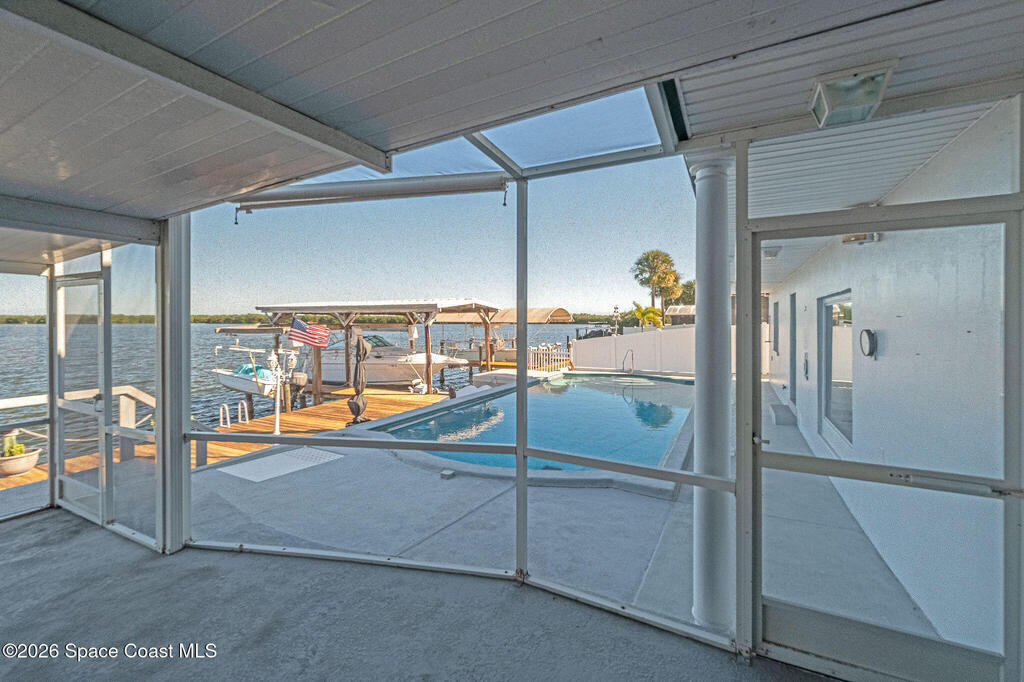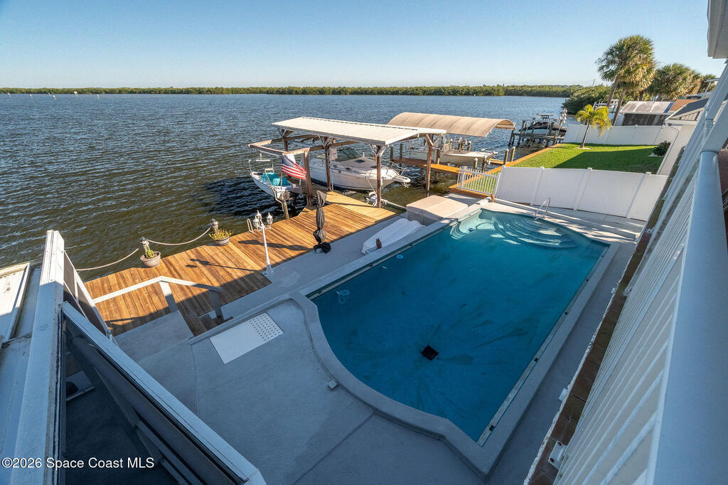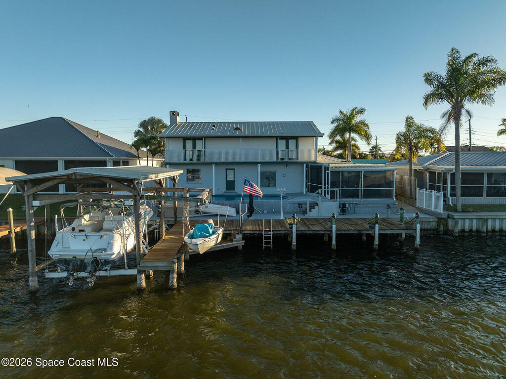 Set along the peaceful waters of Sykes Creek, this inviting 4 bedroom,3.5 bath home is the perfect blend of comfort and laid-back coastal living. With a sturdy metal roof and a relaxed vibe, this home is all about enjoying life on the water. Boasting 74' of waterfront accompanied by 2 boat lifts ,solar heated pool, hot tub, screened in porch gives you the desired Florida lifestyle us Brevardians know and love. Bonus points= home is PRIME location for the annual boat parade held every December.