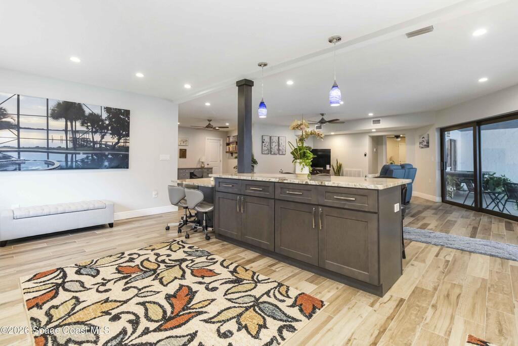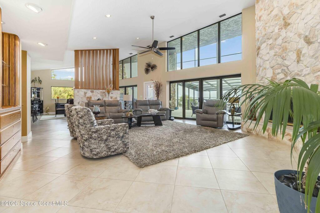 WATERFRONT, ELEVATOR, MULTIGENERATIONAL, CONCRETE ROOF, & POOL home. Directly on the water! No roads to cross to get to your very own dock with multiple lifts for a Boat, Jet Ski, and Kayak! Experience the ultimate in luxury coastal living with this multi-generational 4-bedroom, 4.5-bath pool home. With a solid concrete roof adds exceptional durability, energy efficiency, peace of mind, making this home as strong as it is stunning. Once you step inside, you will find a bright, open floor plan featuring soaring ceilings, expansive living areas, and panoramic water views. The home includes two fully equipped kitchens, one on each level, each showcasing granite countertops, custom cabinetry, and spacious islands ideal for entertaining. The luxurious primary suite captures breathtaking water views and includes a spa-inspired bath and direct access to the outdoor living area. Enjoy year-round outdoor living with a sparkling pool and spa. This home also has a unique ability to be seperated