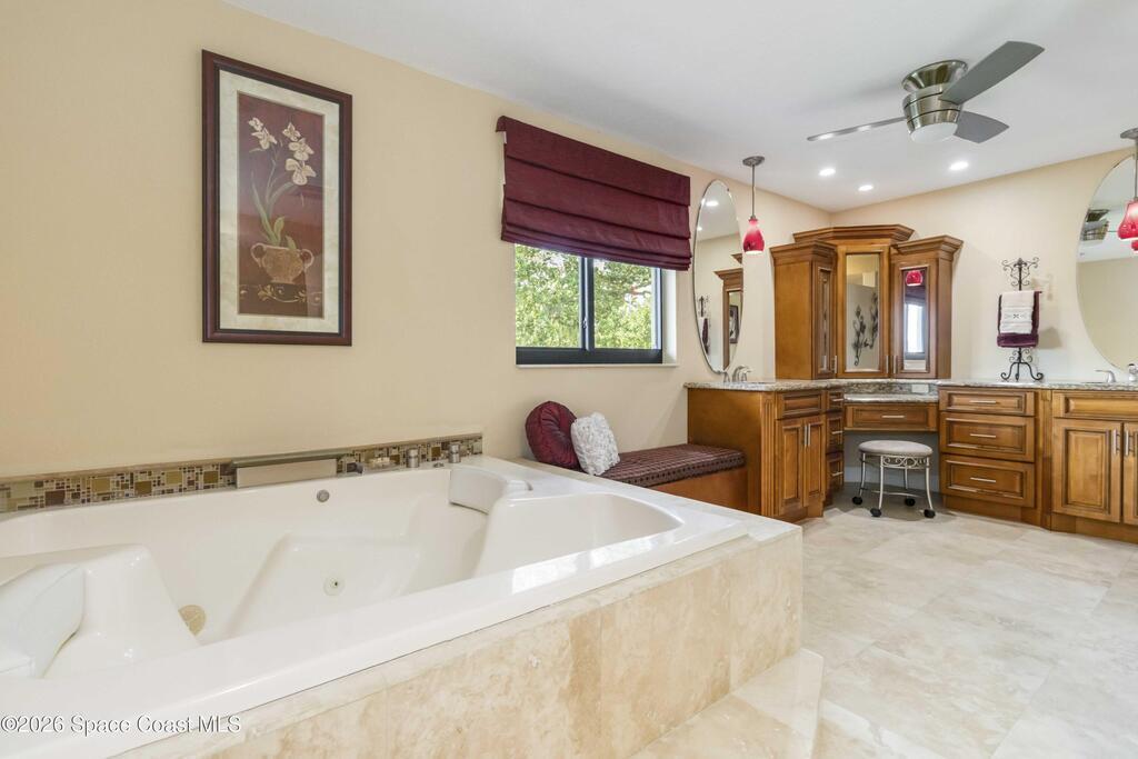 - Interior Features: Breakfast Bar, Built-in Features, Butler Pantry, Ceiling Fan(s), Eat-in Kitchen, Elevator, Entrance Foyer, Guest Suite, His and Hers Closets, Kitchen Island, Open Floorplan, Pantry, Primary Bathroom -Tub with Separate Shower, Primary Downstairs, Walk-In Closet(s) and Wet Bar