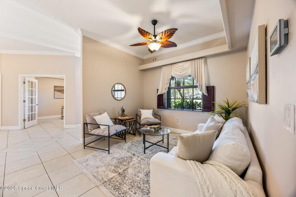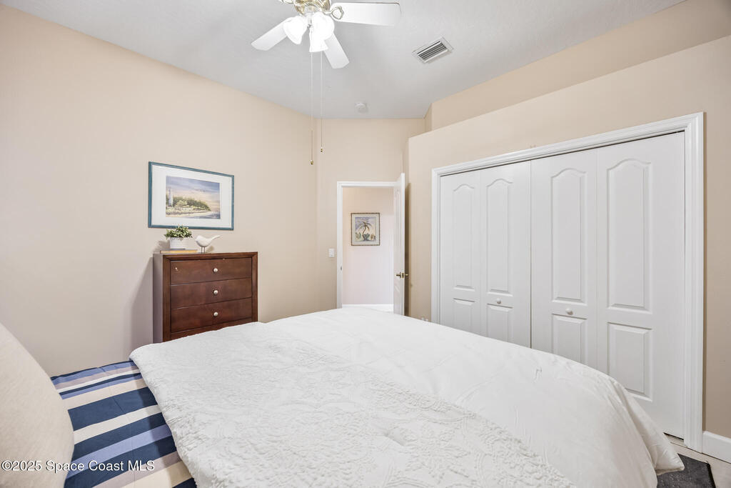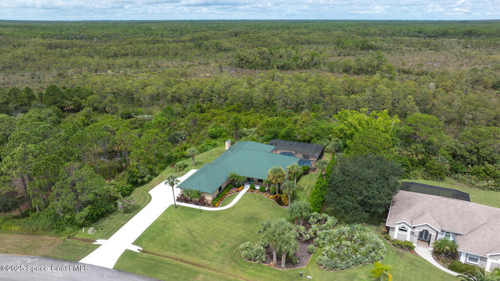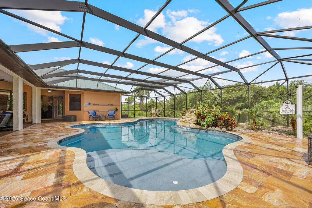 **DUAL PRIMARY SUITES** Set on 1.23 acres across from the neighborhood park, this home gives you space, and the kind of Florida backyard you daydream about - with a heated 33,000-gallon pool just steps from the bedrooms. Inside, the layout makes everyday life easier: 5 bedrooms, 4 baths, and two true primary suites, both with doors straight to the pool. You'll love the crown molding, cozy wood-burning fireplace, and all the storage - including a huge laundry room with space for a secondary fridge or freezer and a separate storage room. Recent upgrades include standing seam lifetime-style metal roof, whole-house generator with propane tank, and reverse osmosis. If you've been searching for a Grant-Valkaria pool home, this is the one!