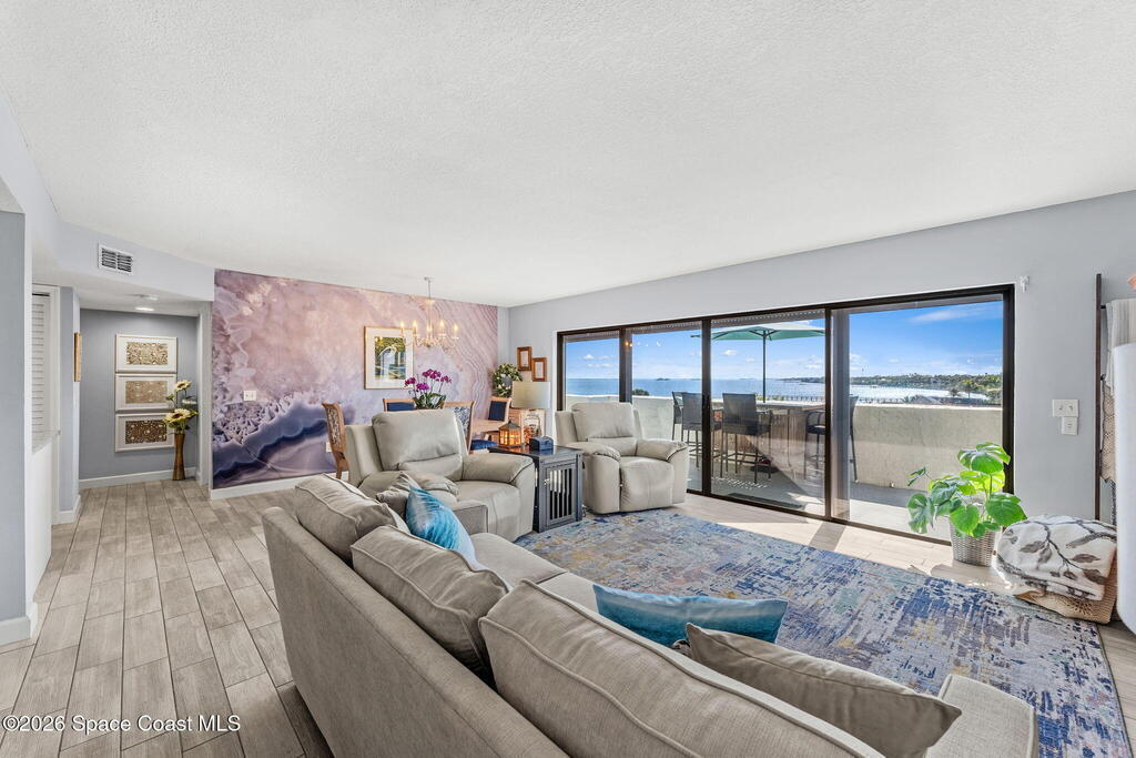 Experience a truly unique riverfront lifestyle at Rhum Cove, a gated waterfront community offering a private marina with deeded boat slips -- all at an exceptional value. This sought-after complex delivers a yacht-club feel with amenities including a waterfront pool, pickleball courts, fitness center, sauna, clubhouse, dock, and secure gated entry.This desirable southwest-corner unit features 3 bedrooms and 2 bathrooms with expansive river views and stunning sunsets. Interior highlights include wood-look tile flooring, granite countertops, quad sliding glass doors, a recently renovated bathroom, in-unit laundry, and a 1-car garage. Additional updates include a 2019 A/C with UV system, 2024 water heater, and roll-down shutters for added comfort and protection.All pending assessments have been paid by the seller, offering peace of mind for the next owner. Whether you're a boater, river enthusiast, or simply seeking a lock-and-leave waterfront lifestyle this is a cannot miss!