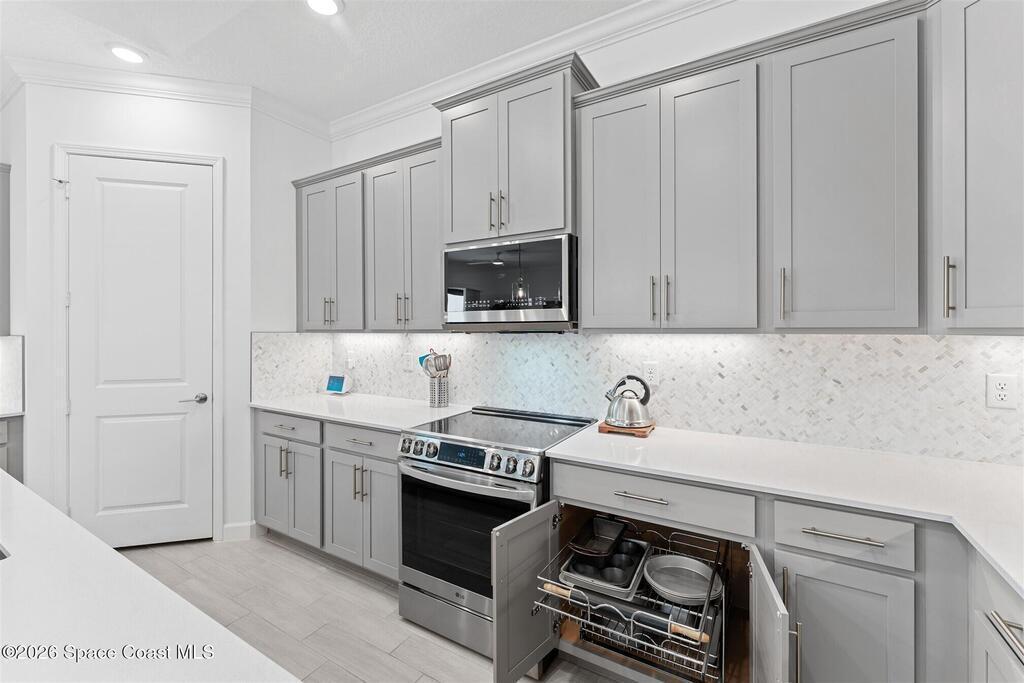 - Interior Features: Built-in Features, Ceiling Fan(s), Entrance Foyer, Guest Suite, Kitchen Island, Open Floorplan, Pantry, Primary Bathroom - Shower No Tub, Primary Downstairs, Smart Home, Smart Thermostat, Split Bedrooms, Vaulted Ceiling(s) and Walk-In Closet(s)