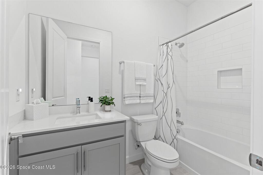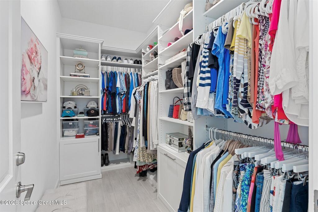 Waterfront, model home inspired, 3 bedroom plus den, 3 bath sophia plan in Bridgewater, Viera's resort style 55+ gated community! This stunning 3-year-old home is meticulously decorated in the popular palette of grays and whites and has every option: IMPACT WINDOWS & TRIPLE SLIDER, plank tile throughout, plantation shutters, crown molding, 8' doors, designer lighting, epoxy garage floors, and water filtration! The kitchen has a unique chamfered tray ceiling and is complete with upgraded appliances, a custom pantry and a gorgeous backsplash that highlights the gold toned faucet and cabinet pulls! One bedroom is an en-suite for those special overnight guests! Owner's suite has huge walk-in w/custom built-ins. Enjoy the lake views from the expanded screened lanai! Bridgewater's breathtaking private clubhouse has a heated pool & spa, fitness center, billiards room, lighted pickleball & tennis courts, and even a movie theater! Close to the ocean beaches, cruise ports, shopping and dining!