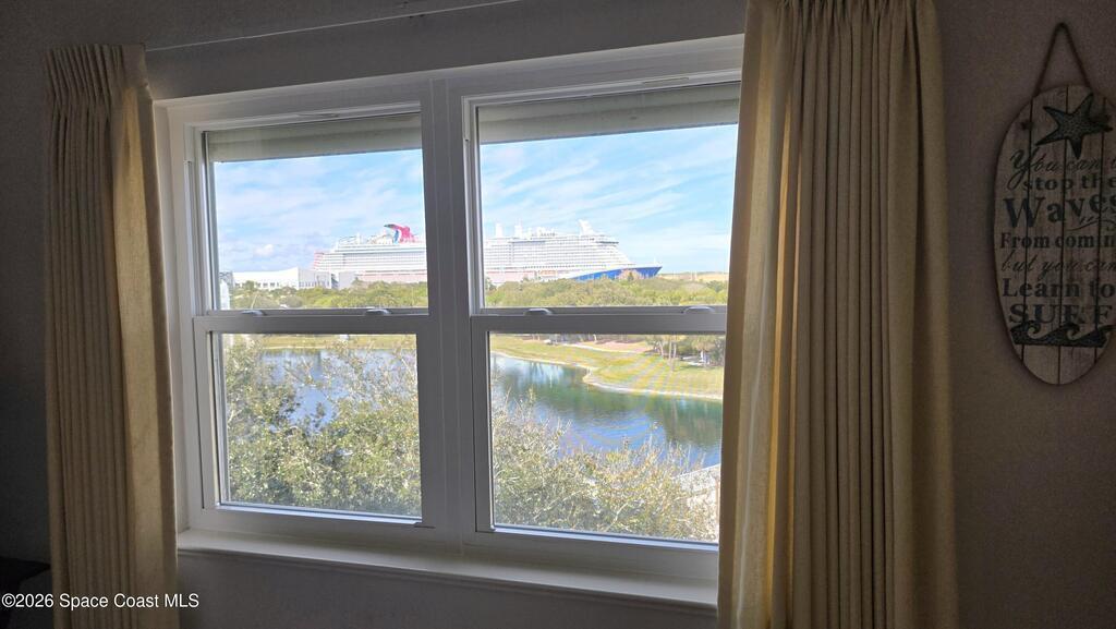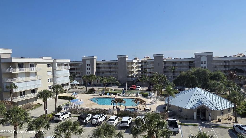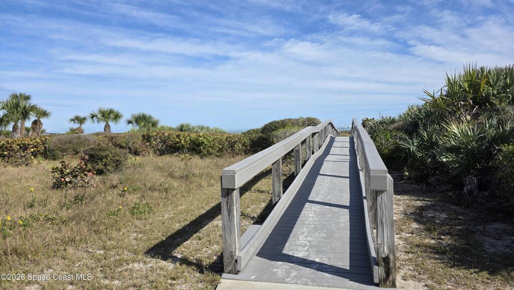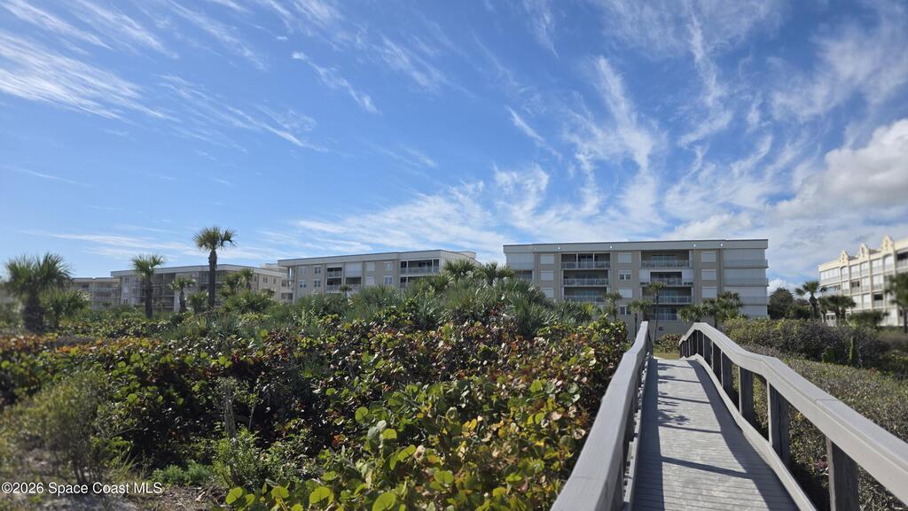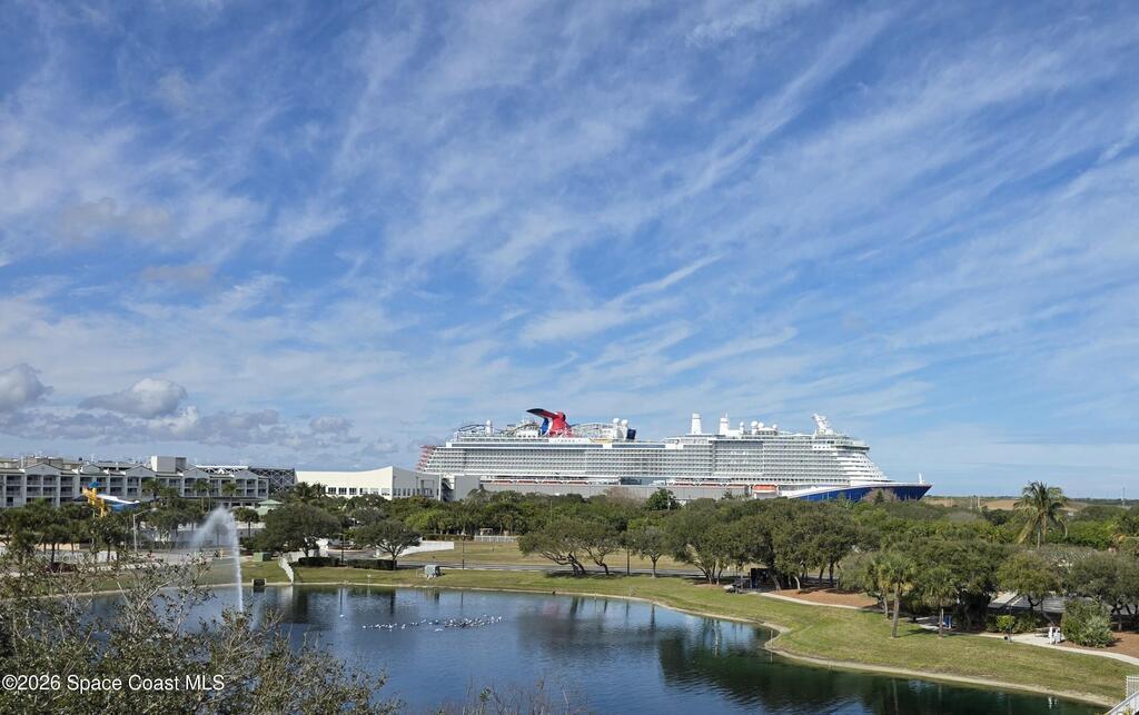 321 BLASTOFF!!! Amazing rocket launch and booster return views from this PENTHOUSE UNIT overlooking Port Canaveral. VA LOAN APPROVED COMMUNITY!!!! Sit on the shaded rear balcony with an automatic rolldown shade and gaze over Port Canaveral. See all the cruise ships, rocket launches, sunrise and sunsets right from your lounge chair. You may even catch sight of a submarine! This beachfront community has a heated pool, hot tub, sauna, gym, community room with kitchen, outdoor bbqs, games & a library! This is a lovely 2 bed 2 bath 5th top floor unit with a side beach view from the front walkway. Large open layout, with washer/dryer in the unit. Home has a large kitchen and spacious bathrooms. 2 car garage under building. Spend your afternoon playing pickleball, then run your car through the super convenient car wash on your way to the Port for dinner in one of the many local restaurants. Jetty park is super close by as well. No shortage of fun with this home! Come check it out today!