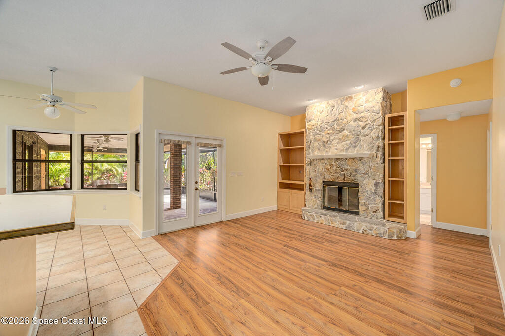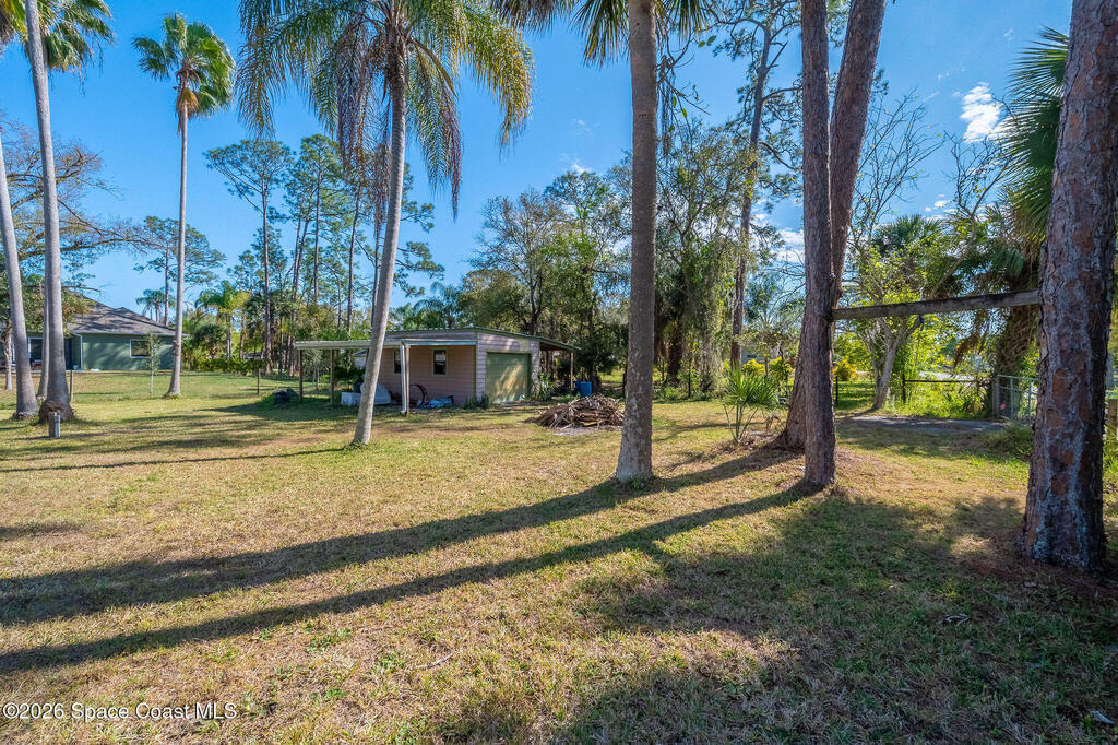 This spacious 4-bedroom, 3-bathroom brick estate in West Melbourne offers rare privacy on over half an acre of land. With no HOA RESTRICTIONS you can enjoy this property as you see fit. The home features a massive 3-car attached garage plus a large detached garage / workshop, providing ample space for a workshop, boat or RV storage, or car collection.Inside, you will find an expansive layout with oversized bedrooms and a cozy wood-burning fireplace in the main living area. The open concept kitchen is ready for entertaining guest. The exterior is designed for the Florida lifestyle, featuring a newer roof, an outdoor shower, and a backyard already pre-wired for a future pool.