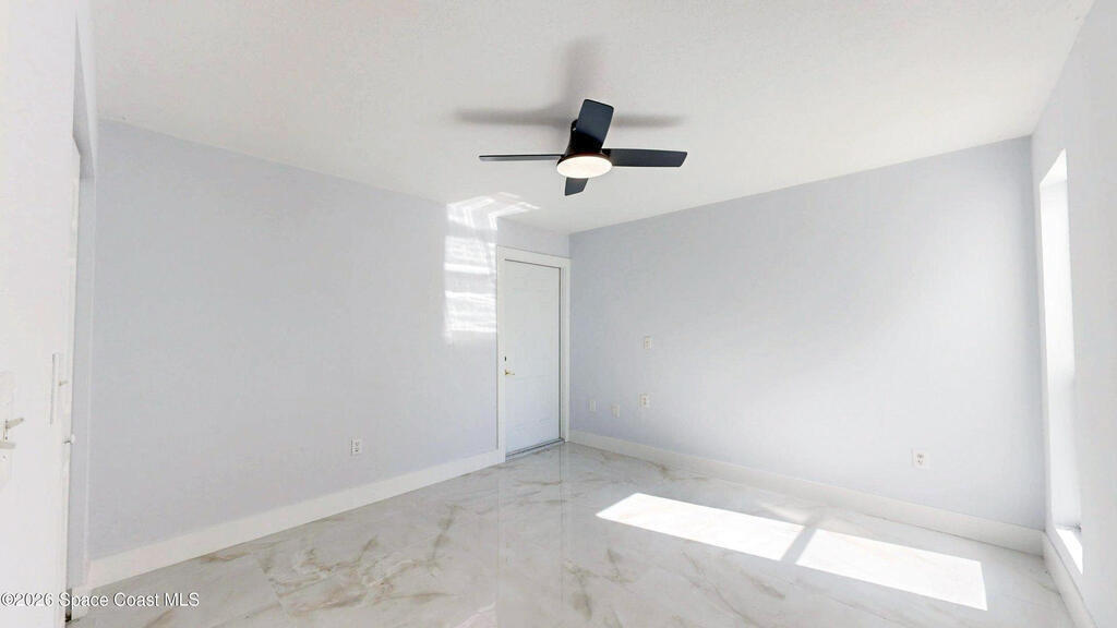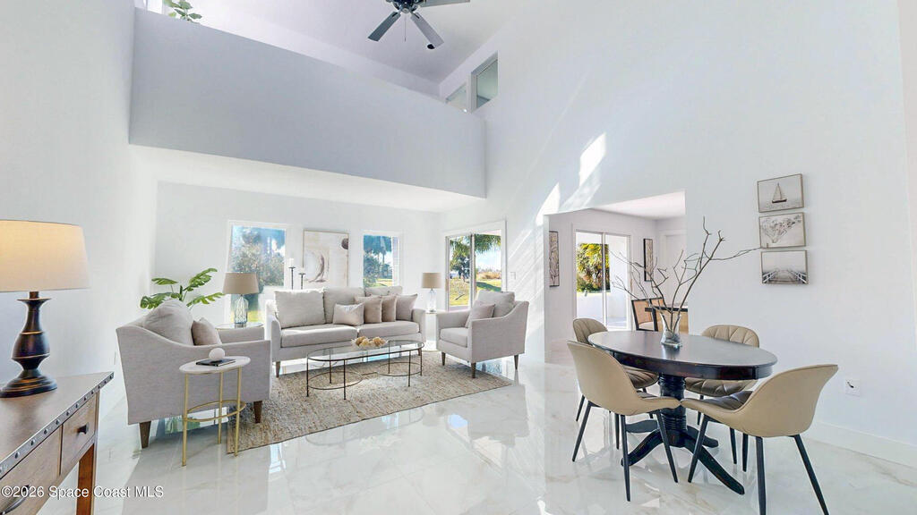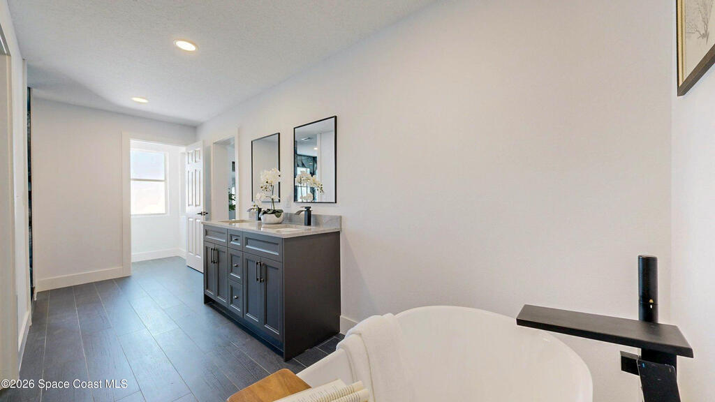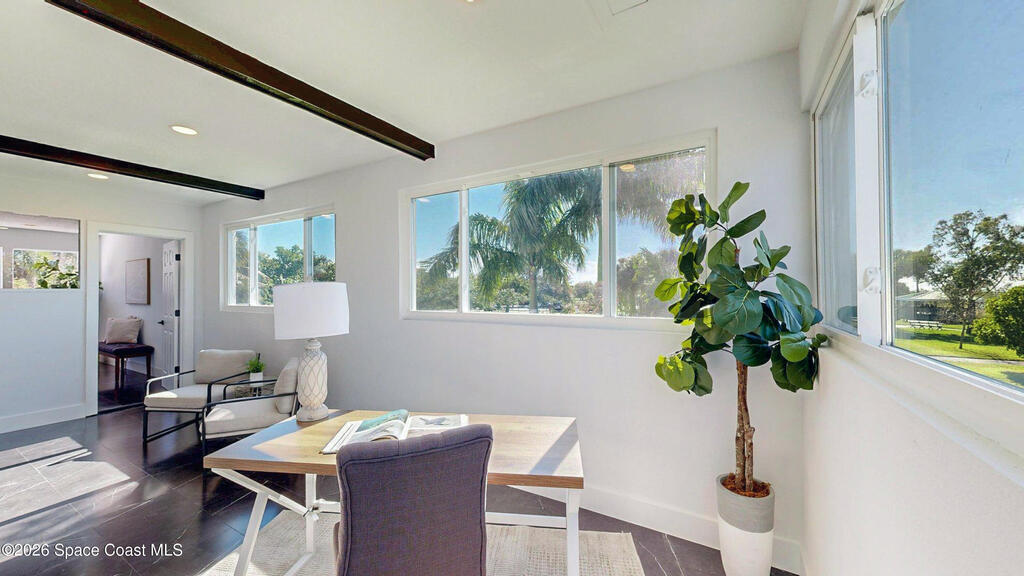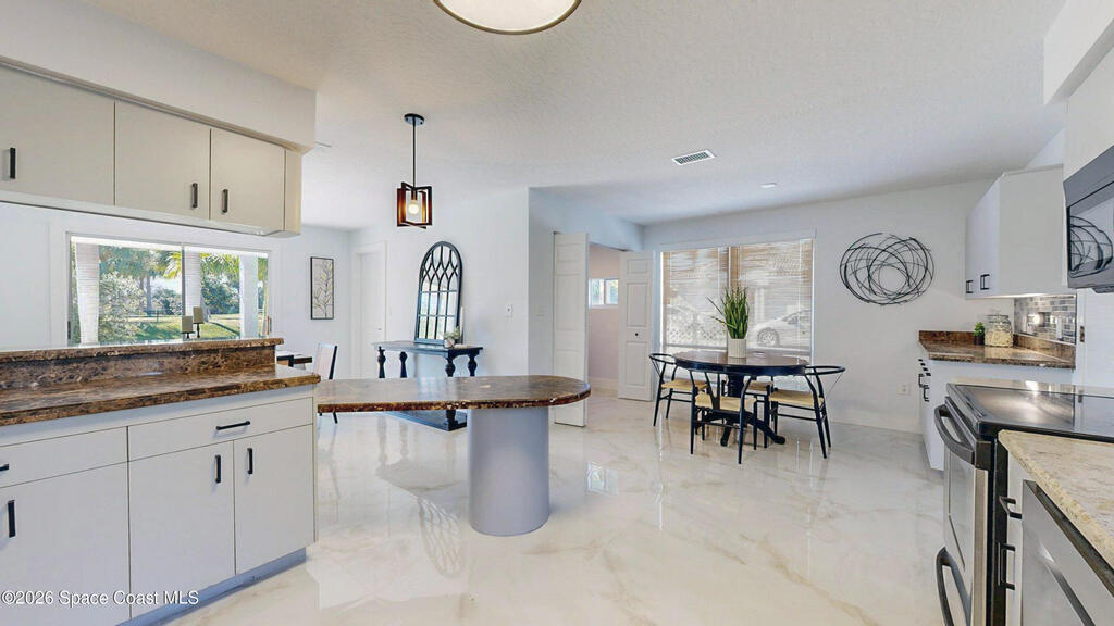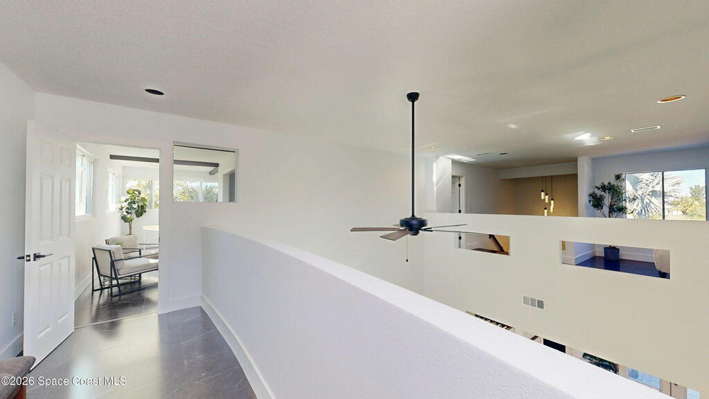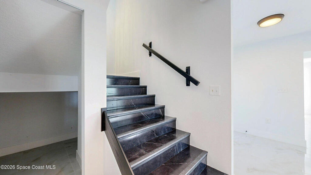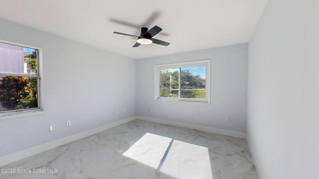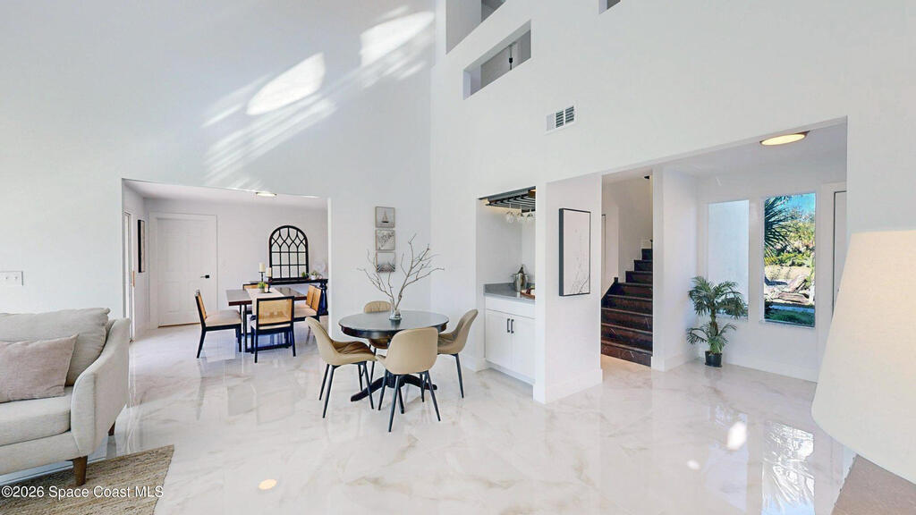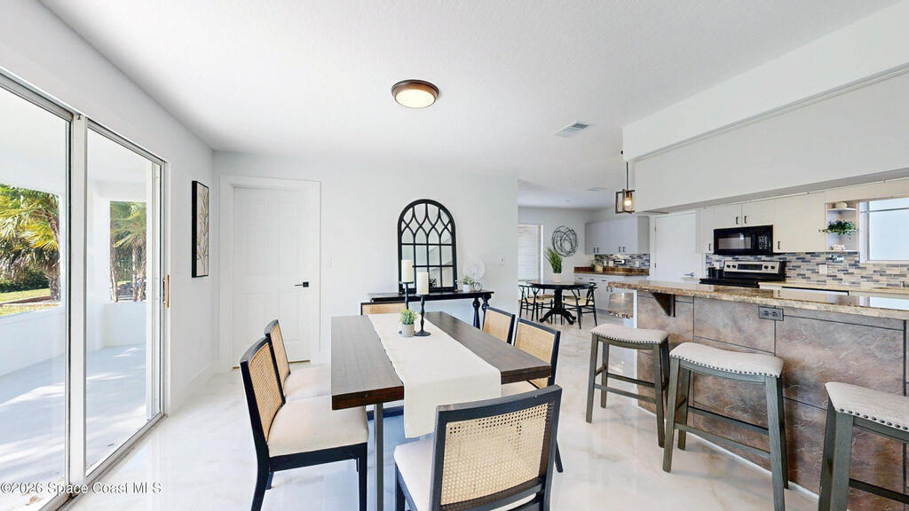 MAKE US AN OFFER? Discover this beautifully updated 3-bedroom, 2.5-bath modern contemporary coastal retreat-tucked away in a quiet Cape Canaveral cul-de-sac--close to beaches. Rare bonus of cruise ship views as they glide into Port Canaveral and rocket launches from the upstairs windows or patio-adding a true coastal wow factor. The interior features updated appliances, brand new flooring, and meticulous updated bathrooms, perfectly complementing the home's clean lines and sophisticated modern design. Upstairs, the primary suite serves as a private retreat, featuring a spa-inspired bath with a freestanding soaking tub, oversized shower, dedicated dressing area, sitting spaces, and peaceful water views. Two additional bedrooms on the lower level provide comfortable accommodations for family or guests. Bike to the beach in minutes or take a short stroll to enjoy ocean breezes and sunrise walks. The backyard backs up to the serene Manatee Sanctuary Park and the scenic Banana River