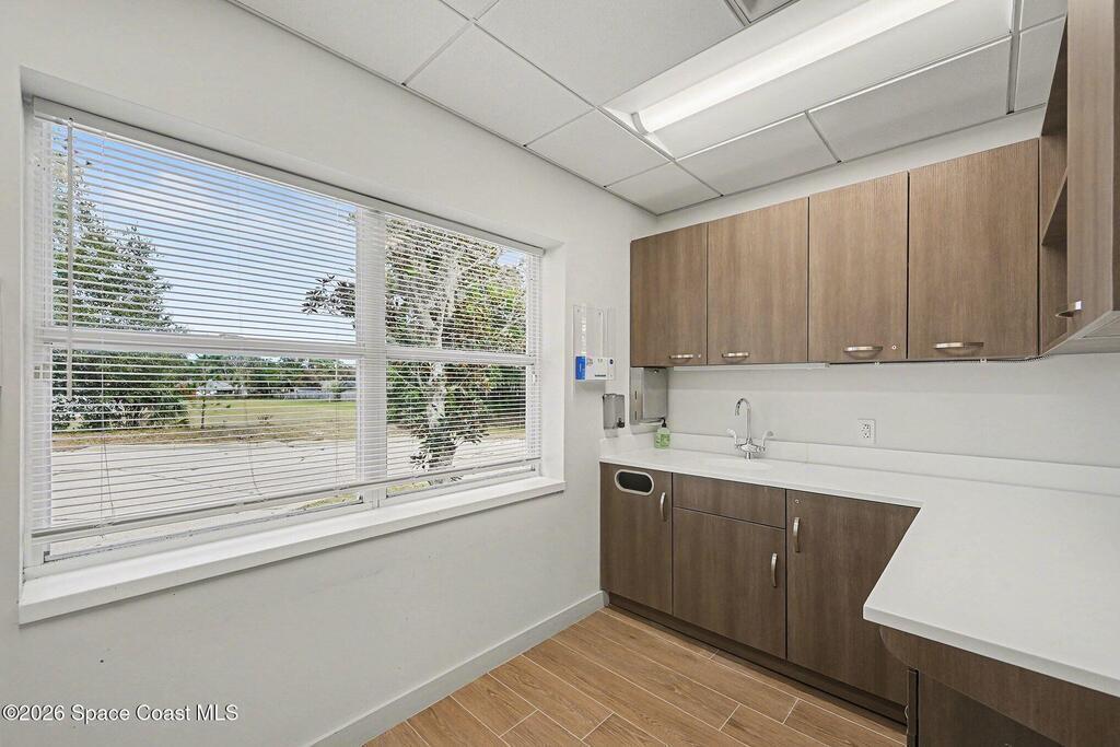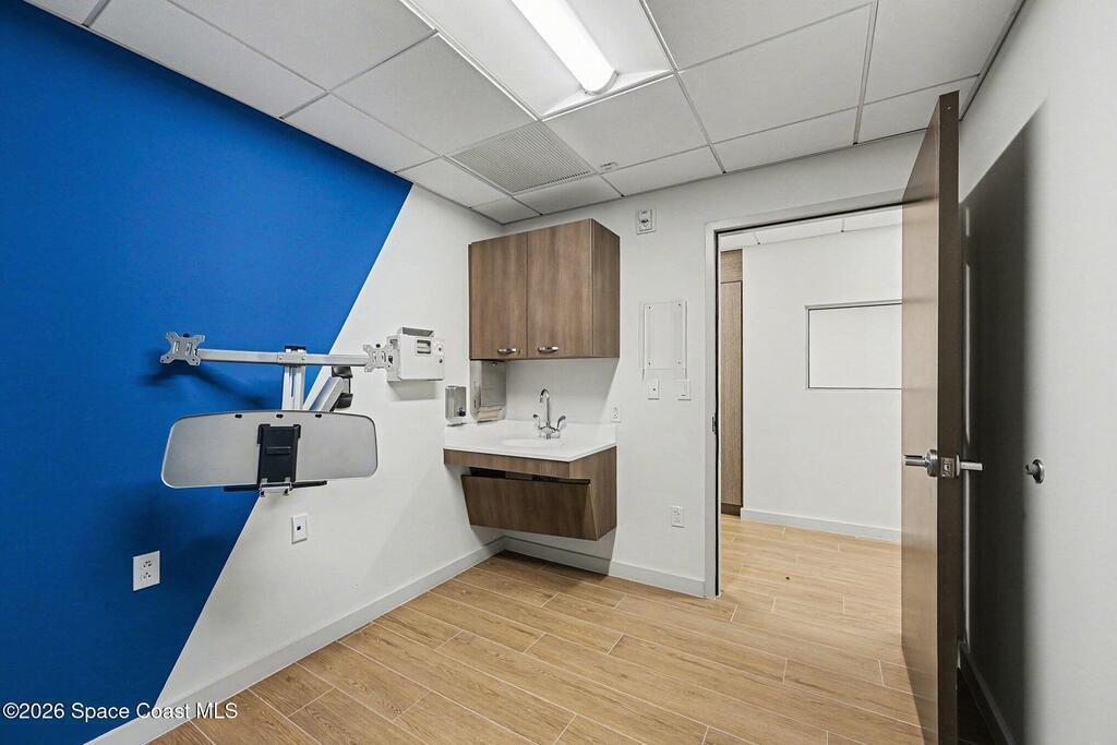 Turnkey medical clinic in Titusville, FL. This 4,804 SF single-story facility sits on 1.18 acres and has been completely gutted and remodeled. The building offers an efficient and flexible clinical layout with 12 total clinical rooms, including 6 physical exam rooms (each with sinks, cabinets, and computer mounts), specialty/procedure rooms, a treatment/observation room, a multipurpose group consult/education room, and a lead-lined X-ray room plus a dedicated dental X-ray closet. The facility includes four restrooms consisting of front men's and women's restrooms along with two interior single-user restrooms, including ADA. Additional features include a modern front reception and lobby with controlled access, lab with sink and counters, bio-hazard room, multiple administrative offices, staff breakroom, storage areas, zoned HVAC, and complete fire and security alarm systems. The property offers 28 parking spaces with covered rear parking and multiple ADA spaces. Medical/ Office Zoning.