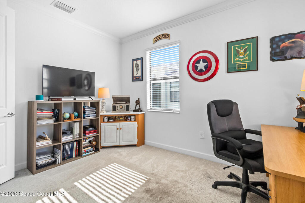 Welcome home to this beautifully maintained 1,565 square-foot duplex in the highly sought-after, gated 55+ community of Bridgewater at Viera. This resort-style neighborhood offers both comfort and convenience. The home features two spacious bedrooms, a flex space and a large two-car garage. Embrace a lifestyle of privacy and relaxation with access to exceptional amenities, including a private clubhouse, heated pool, fitness center, billiards room, coffee lounge, lighted tennis and pickleball courts, and a movie theater. Best of all, lawn care is included-giving you more time to enjoy evereything this vibrant community has to offer.