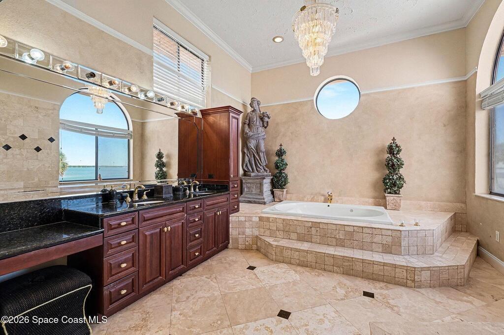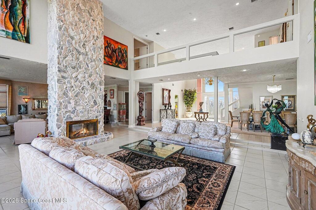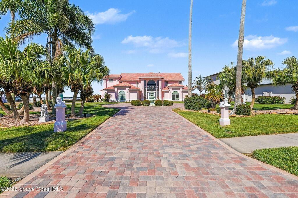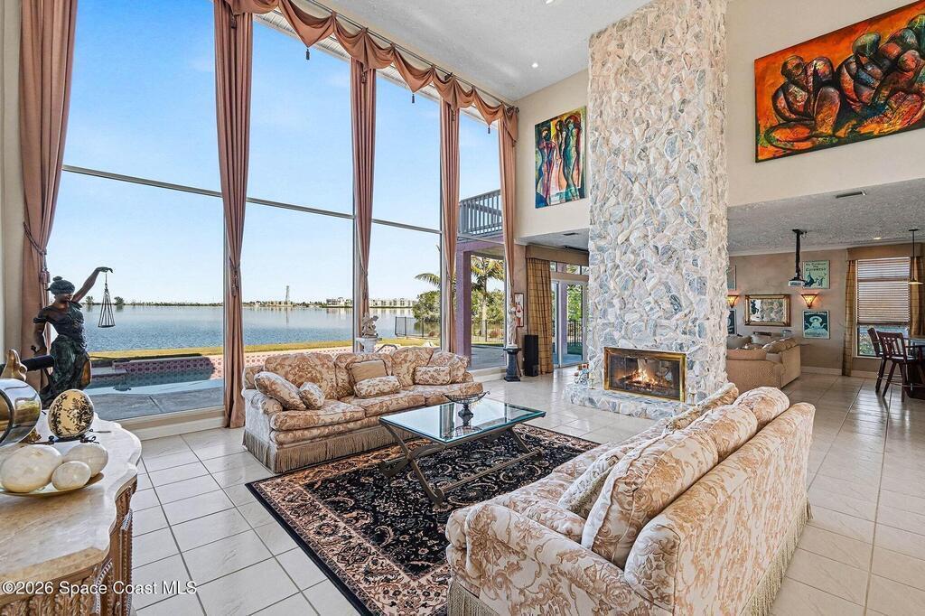 This grand two-story waterfront residence offers over 6,200 sq ft of living space (8,400+ total under roof), presenting a rare opportunity to make it your own. With 6 bedrooms and 6 full baths, there is ample space to live and entertain on a large scale, and it's ideal for multi-generational living, including accommodating aging family members.A circular driveway with a fountain creates a striking arrival, with guest drop-off at the front door and a separate 3-car garage for convenience. Inside, open living areas, vaulted ceilings, a wet bar, and a downstairs primary suite provide flexibility and comfort. Upstairs, an additional primary suite features a private balcony overlooking the Banana River, a spacious bath, and a large walk-in closet.Enjoy 95 feet of navigable waterfront with a private dock, seawall, and pool.
