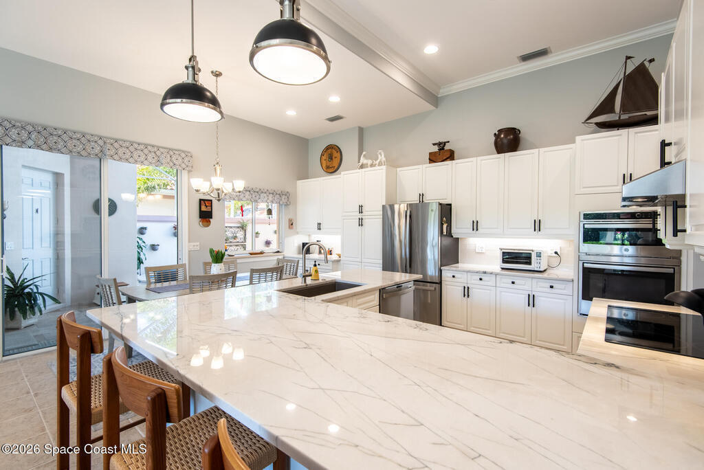 Spectacular courtyard home with astonishing updates. This 3 bedroom 3 bath 2,127 square feet under air residence features a delightfully remodeled kitchen with open floor plan. Large living room opens to private backyard/preserve and to a huge master suite. Heated pool/spa recently resurfaced, newer pool pump, travertine floor around pool/patio area. Separate guest cabana add to the appeal. Astounding landscaping all around the property. Come and enjoy the amazing Grand Harbor lifestyle. Immaculate home gently used by owners. Only few minutes to greatest beaches. Lovely community pool as well on St Philips. Grand Harbor amenities with membership. Survey and complete floor plan available per request.