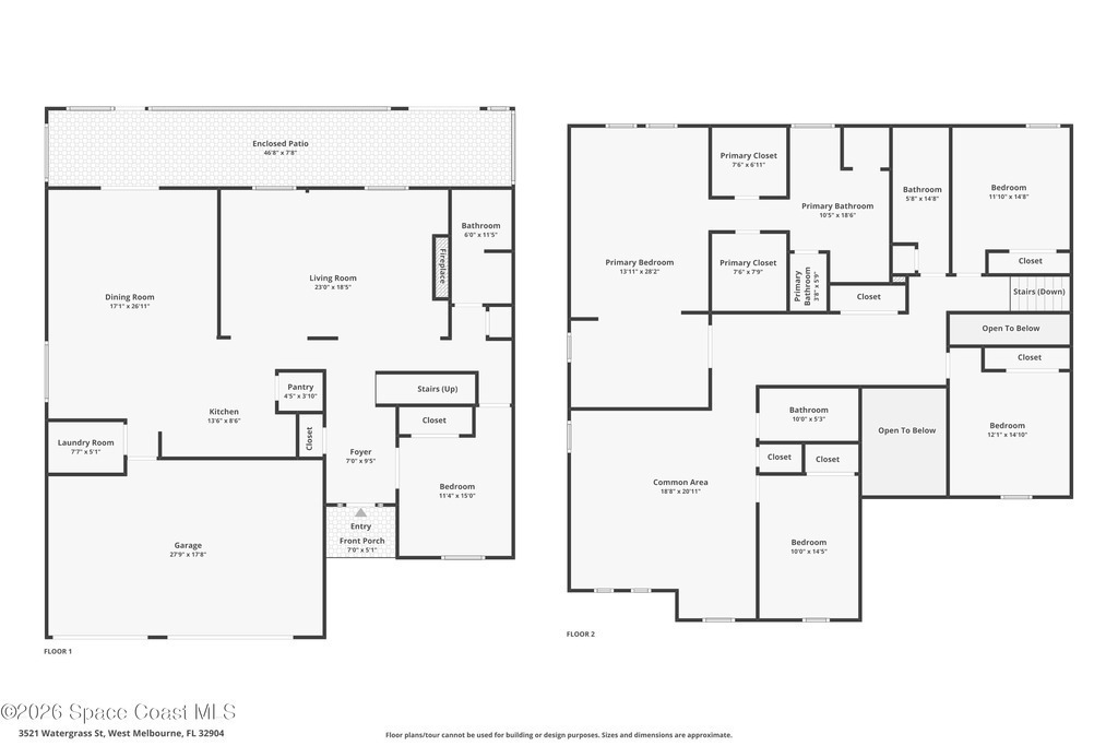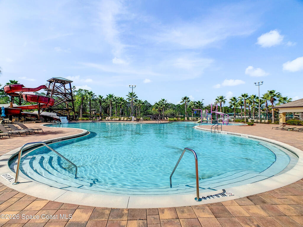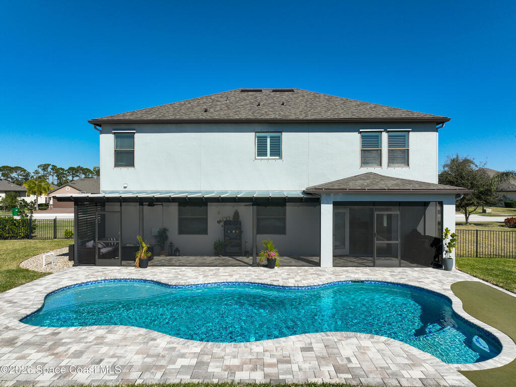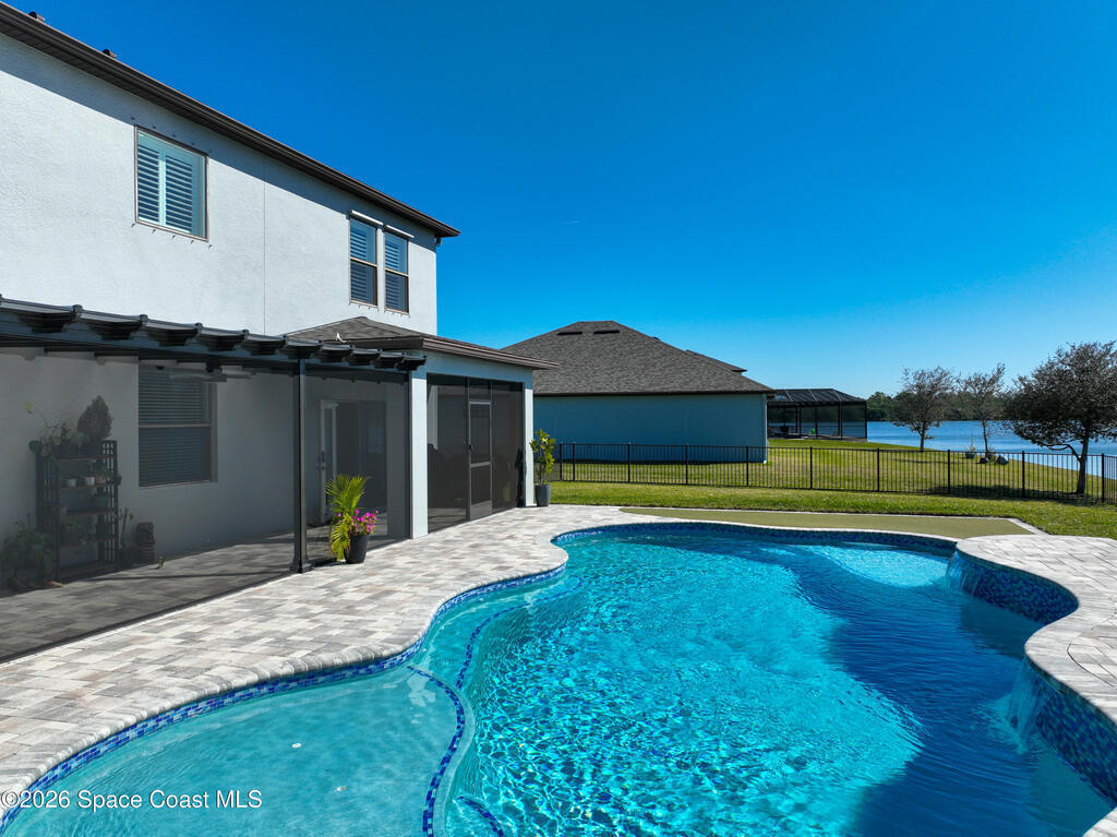 Situated on a .35-acre lot in a highly sought-after community, this spacious pool home offers a balanced layout ideal for everyday living and entertaining. The main level features an open kitchen, living, and dining area, a conveniently located laundry room, and a bedroom currently used as an office. Upstairs includes four bedrooms, three full bathrooms, and a secondary living area ideal for a media or playroom. The primary suite offers a generous sitting area, a custom barn door leading to spacious his-and-hers closets, and a spa-like en-suite bath with a relaxing garden tub. The fully fenced backyard features a saltwater pool and ample space for gatherings or relaxation. A screened-in patio provides year-round enjoyment while overlooking the water. Recent updates include a new roof (2023), AC (2023), and fresh exterior paint. Resort-style amenities include a pool, playground, tennis courts, and a fitness area. Don't miss the opportunity to make this home yours.