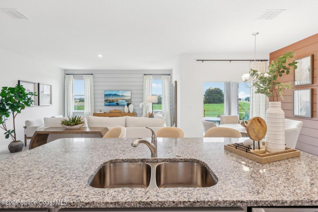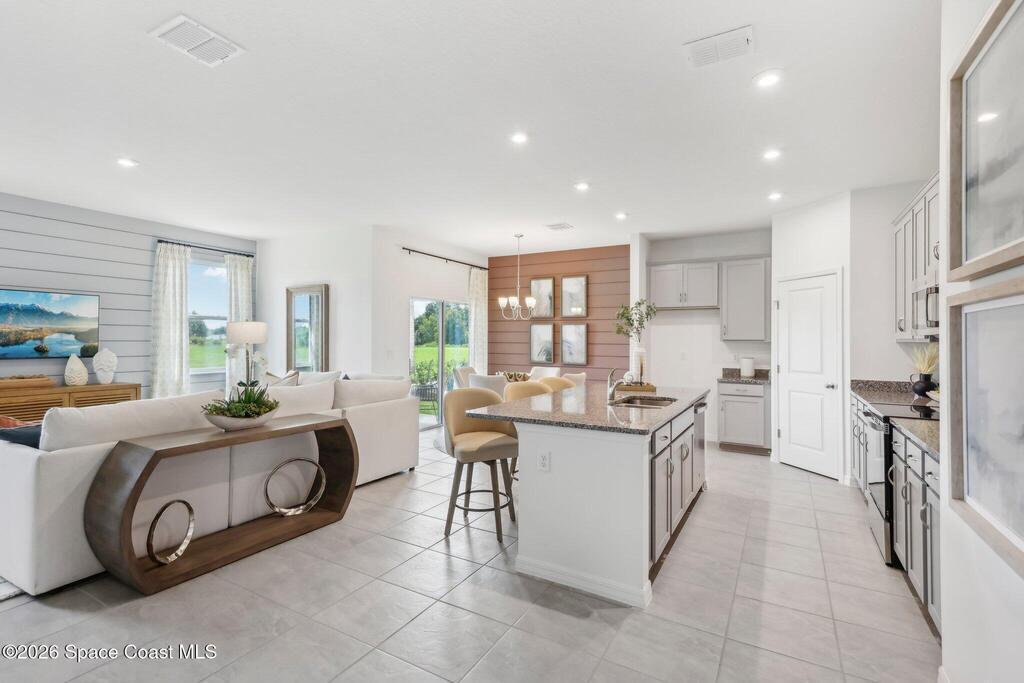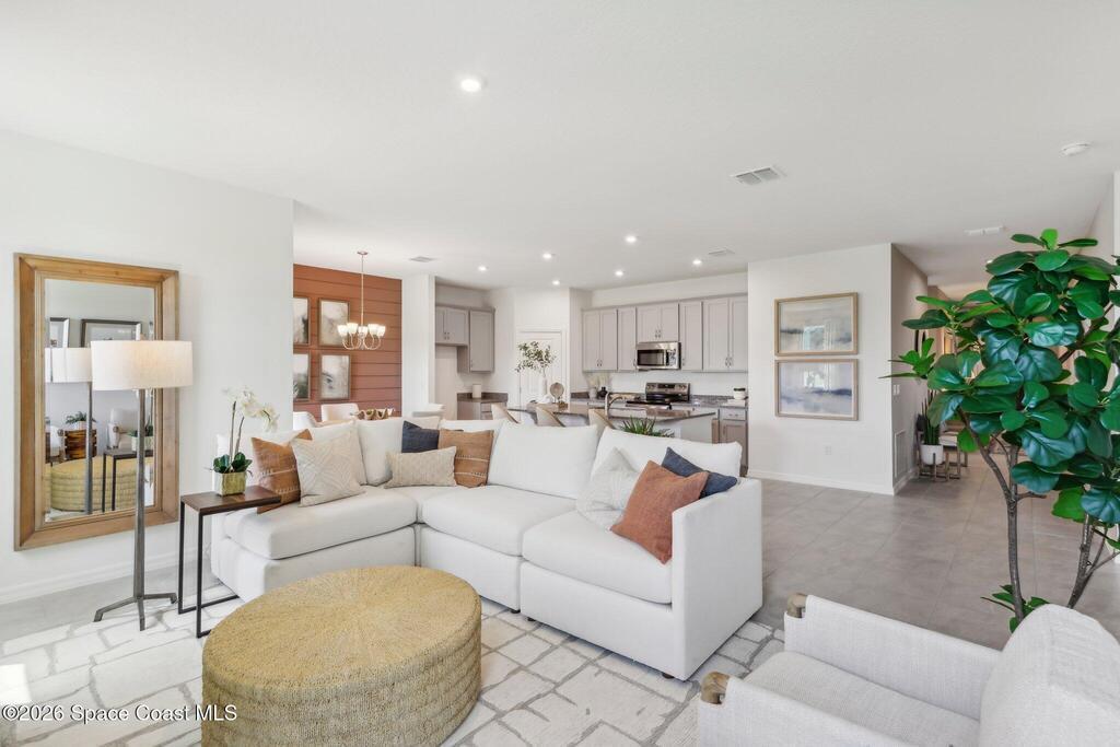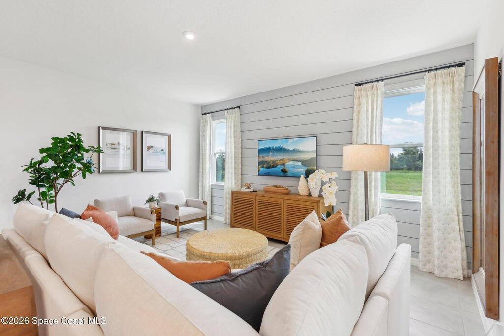 The Juniper offers the perfect blend of modern design and practical living. From its spacious three-car garage to a cozy outdoor lanai, this home accommodates all your living needs while keeping up with today's style standards. Three main level bedrooms located at the front of the home have access to a dual vanity bathroom and a walk-in laundry room right across the hall--all thoughtfully designed for comfort and convenience! Venture farther into the open concept kitchen and dining area that's perfect for gathering for festive holiday feasts...and after dinner take advantage of the spacious 17x17 great room to spend time with good company. Enjoy all these features and the Florida sunshine from the covered lanai.