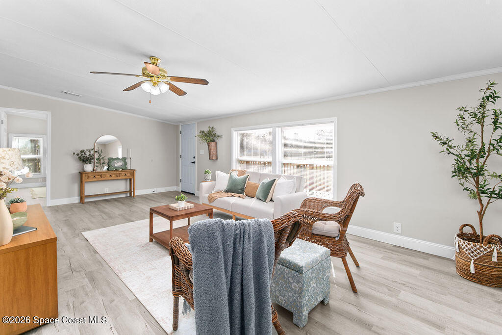This home is like stepping into a BRAND-NEW country home on a sprawling .73-acre parcel with room for all your tools, toys & dreams! A perfectly planned 4 bed/2 bath split layout offers comfort & flow with an eat-in kitchen & coffee bar, defined dining room & a living room that opens to a wide wood front deck -- perfect for morning coffee or stars-out evenings. Completely reimagined with 2018 AC, 2023 roof, tankless water heater, 200 amp upgraded panels inside & out, LVP flooring, double impact windows/doors, new shaker cabinets, poured epoxy counters with mirrored backsplash & fresh trim/baseboards throughout. Retreat to the primary with a soaker tub + walk-in shower dual vanity; guests enjoy a second bath tiled to the ceiling. New insulation, sub-flooring & repiped with CPVC under the home give peace of mind. Enjoy peaceful country living yet just minutes to I-95 access and about 15 miles to University of Central Florida -- close to shopping, restaurants & everyday needs.