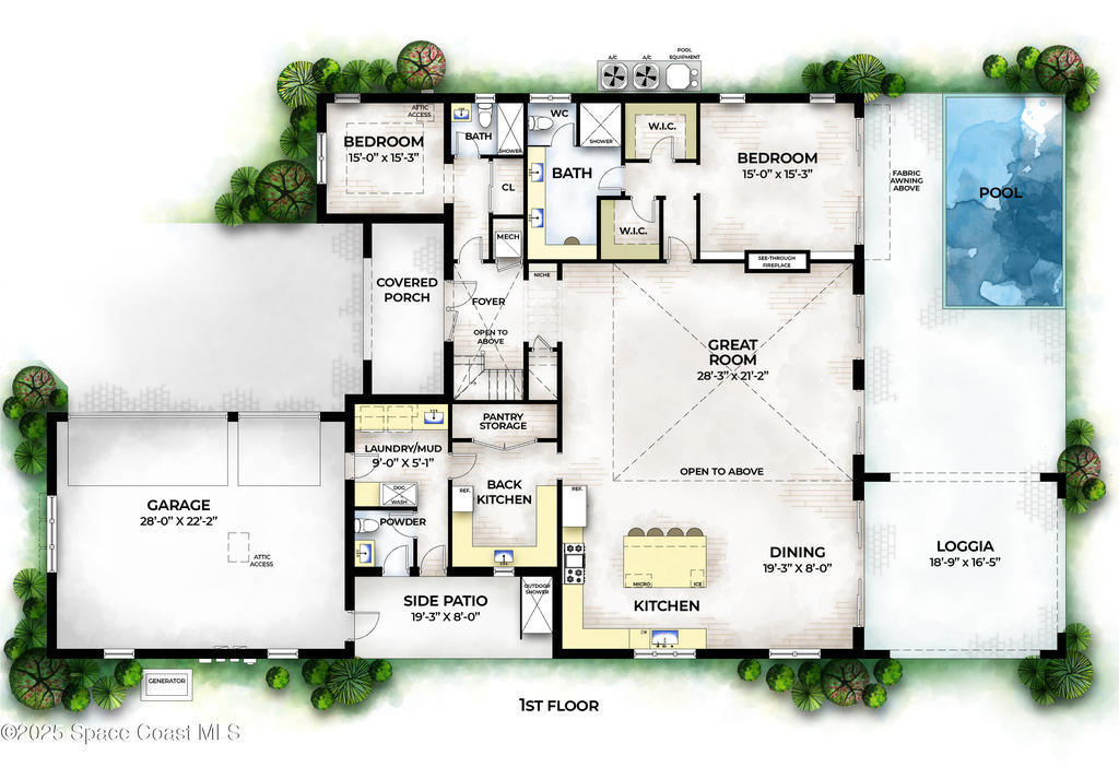Located in the Shores at Tranquility, this to-be-built custom estate offers 3947 square feet of living space in one of Titusville's most desirable new communities. The thoughtfully designed 4-bedroom, 3.5-bath residence blends modern architecture with high-performance construction.Built with full insulated concrete form (ICF) construction on all floors, an engineered slab, wind-rated roof system, and impact-rated windows and doors, this home delivers strength, comfort, and durability. Interior features include level-5 drywall finishes, solid-core doors, oversized trim, custom cabinetry, and architectural detailing. Open living areas flow to covered outdoor spaces.Additional highlights include zoned Daikin HVAC, open-cell spray foam insulation, tankless gas water heater, whole-home generator, 400-amp electrical service pool, paver entry and lanai, and integrated security. Minutes from beaches, boating, and rocket launches on Space Coast!!