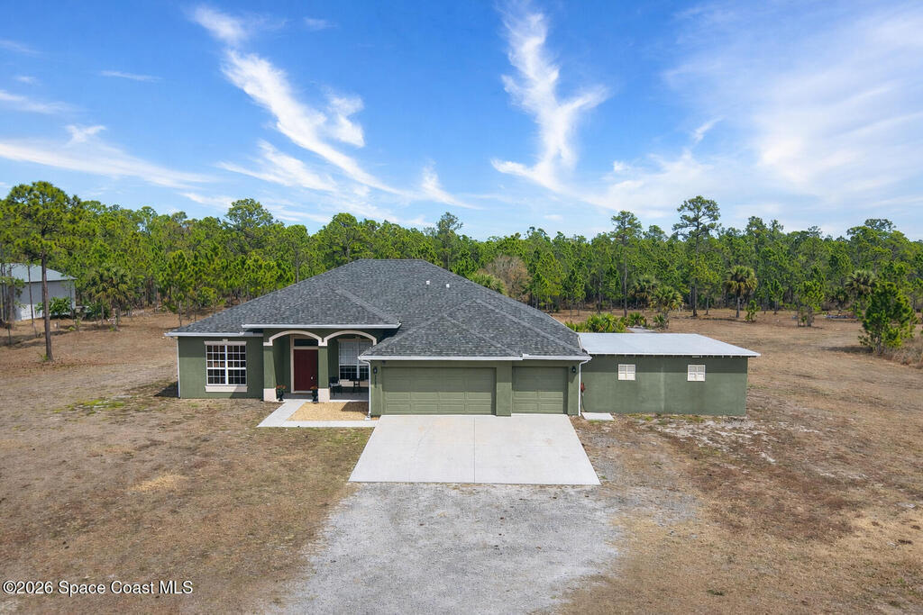 10 Acres with a very well maintained home with NEW ROOF in 2025, 3 bedrooms + Office, attached 3 car garage, additional room off garage for office/gym/dog wash room and additional parking/storage/shop. Lots of space with formal living and dining rooms and large screened pool and lanai area. The property is completely fenced for dogs and horses and includes a 3 stall barn w/tack rooms, chicken coop, and large pond with artisan well. Located on a private road yet close to paved county road and minutes to shopping.