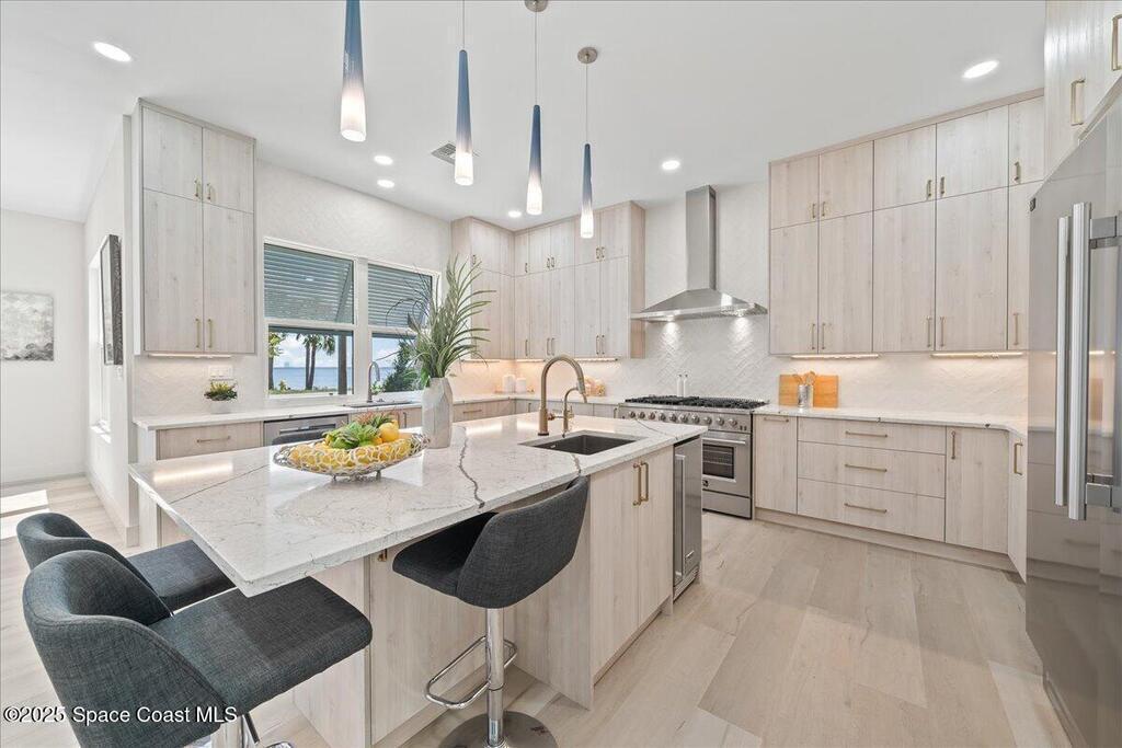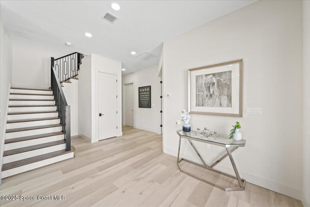 This beautiful riverfront property in Titusville, Florida, situated on Indian River, provides spectacular views of the water and unobstructed views of the launch pads. The newly developed house has a coastal contemporary design, which seamlessly blends modern luxury with classic charm. As soon as you step inside, you will be greeted by a welcoming and spacious open-plan living area. With four bedrooms and three and a half bathrooms, this home offers ample space for everyone. The backyard will include a fenced-in pool, spa, and a summer kitchen perfect for relaxing and enjoying the warm summer days. Don't miss your opportunity to see this pristine new property.