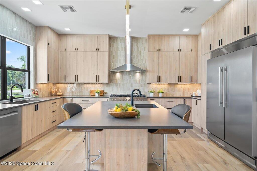 Waterfront dream with direct rocket launch views. Sitting directly across from the Kennedy Space Center, this California Modern beautiful home sits front and center of the breathtaking views of the Indian River and its surrounding natural beauty. Featuring an open floor plan combining the love of luxury with the warmth of Florida living it offers 4 spacious bedrooms with 3.5 bathrooms. Entertain in the relaxing escape to backyard oasis featuring a fenced in pool, spa, and summer kitchen. If waterfront living is for you, this is a must see.