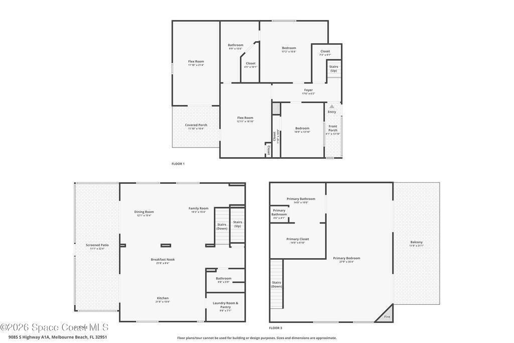 OCEANFRONT- BEACHFRONT- NO HOAALL OFFERS ENCOURAGED!Located in desirable south Melbourne Beach, this UPDATED 3-story single-family home, with balconies on the 2nd and 3rd floors, plus a bonus room and a finished extra storage room, 3 full baths, and 3,110 square feet, features an open floor plan with multiple living areas, LUXURY VINYL PLANK flooring throughout, and an updated kitchen with an island and newer appliances. The primary suite is located on the third floor with a large bathroom, shower, and walk-in closet. An additional bedroom suite is located on the first floor, ideal for guests or flexible living. Exterior features include a large driveway and new shutters throughout. Centrally located near golfing, boating, many other outdoor activities, Vero Beach, Cocoa Beach, Viera, the Space Center, Melbourne and Orlando International Airports, Disney World, and other world-class attractions.