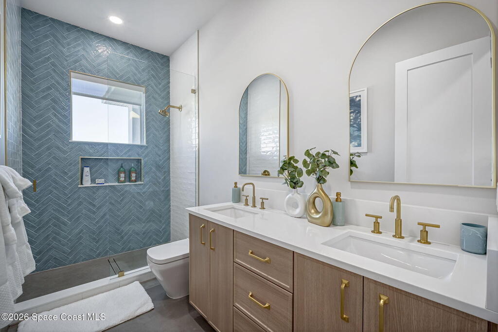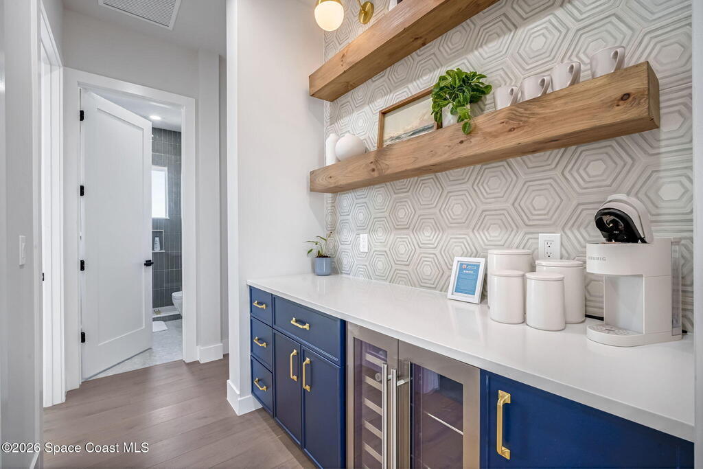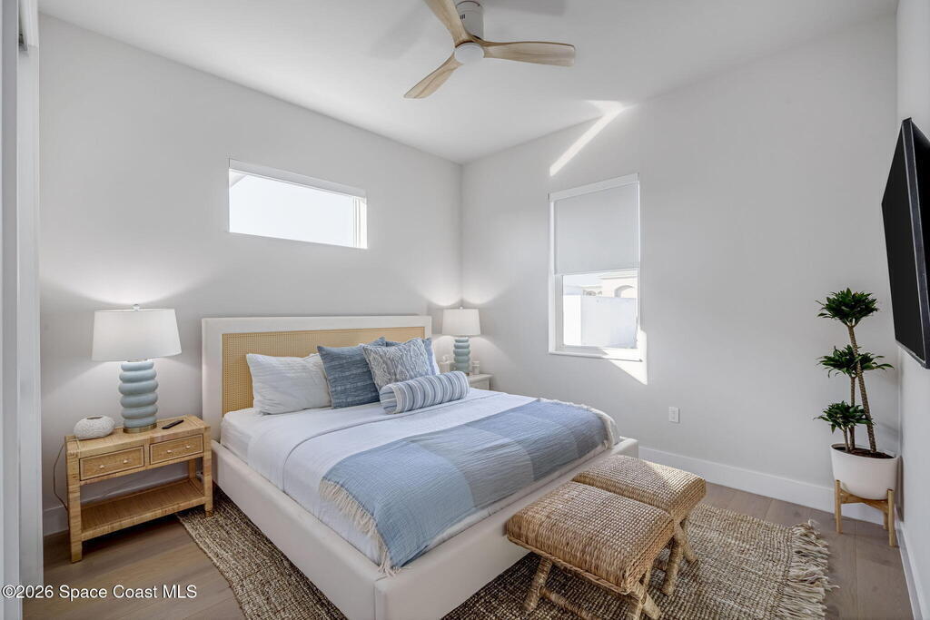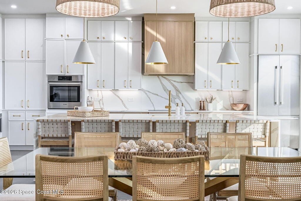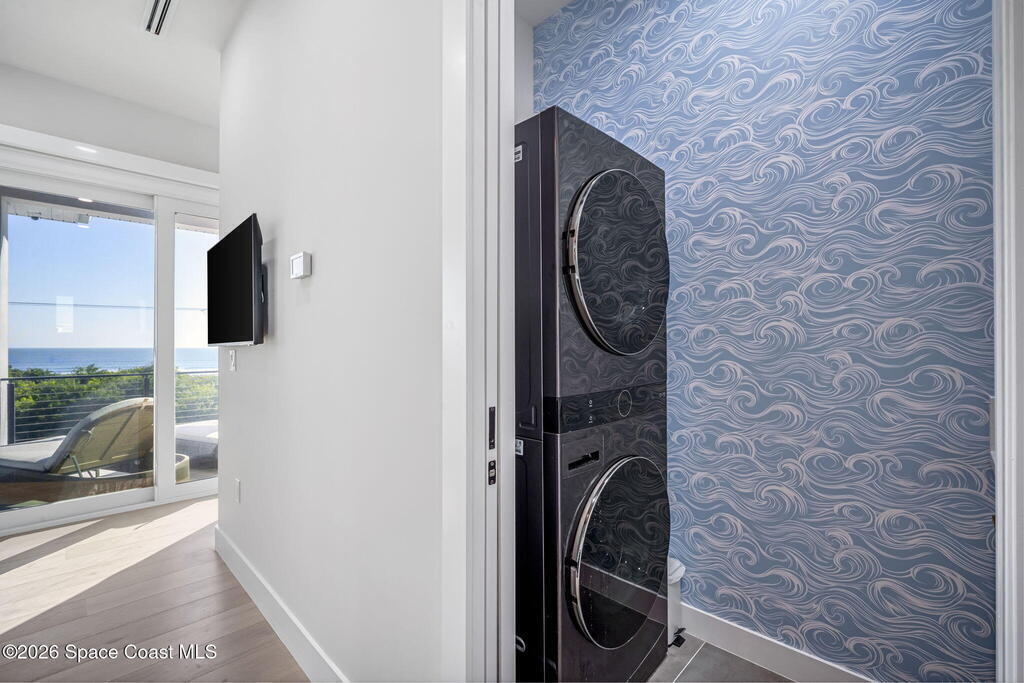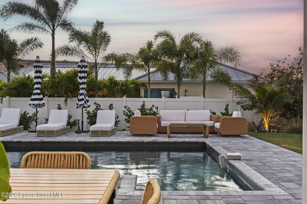 Experience the future of luxurious beachside living in South Cocoa Beach. Just steps from the sand with ocean views and state-protected oceanfront, this brand-new construction leaves no stone unturned. The flexible design is ideal as a weekend escape, full-time residence, or high-performing short-term rental. Indoor-outdoor living begins on the ground level, where oversized sliders open to a covered patio, summer kitchen, and Palm Beach-inspired pool, spa, and lounge area--perfect for entertaining or unwinding after a day at the beach. An elevator carries you to the second-floor living space, featuring a spacious family room and designer kitchen with high-end Bosch appliances, sleek Calacatta quartz, and refined coastal finishes. The third-floor primary suite offers river views to the west and blue ocean views to the east from your private balcony--perfect for sunrise coffee or sunset relaxation. Located within two miles of downtown dining, beach bars, and family entertainment!