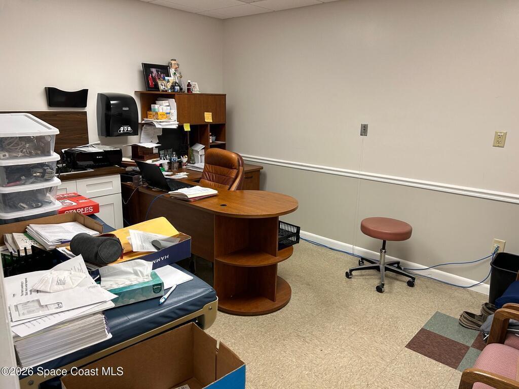 Space is ready to be moved in.Reception/waiting area4 exam roomsNurses stationLabStaff LoungeMonument sign on Eau Gallie Blvd.