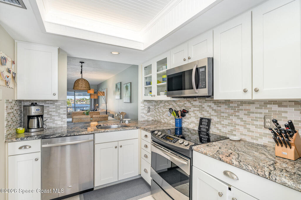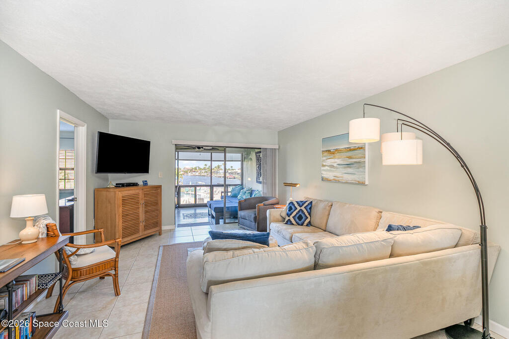 Discover the perfect blend of coastal charm and modern sophistication in this beautifully updated 2BR/2BA canal-front residence. Situated at the tranquil end of a deep-water canal with direct access to the Banana River, this Royal Colonial condo offers front-row seats to Florida's most spectacular sunsets. Thoughtfully maintained and fully modernized, the unit features high-impact windows throughout, including an enclosed, extended lanai that serves as extended living space. Additionally, this unit has a newer hot-water heater (2023); HVAC updates (2021/2025); and new carpet in the bedrooms (2025). Take advantage of premier community amenities, including a waterfront pool, a large fishing dock, kayak storage, one covered parking space and plenty of parking for guests. Boaters will appreciate the availability of community boat slips for a one-time fee of just $750. Conveniently within walking distance to the beach, restaurants and grocery store.