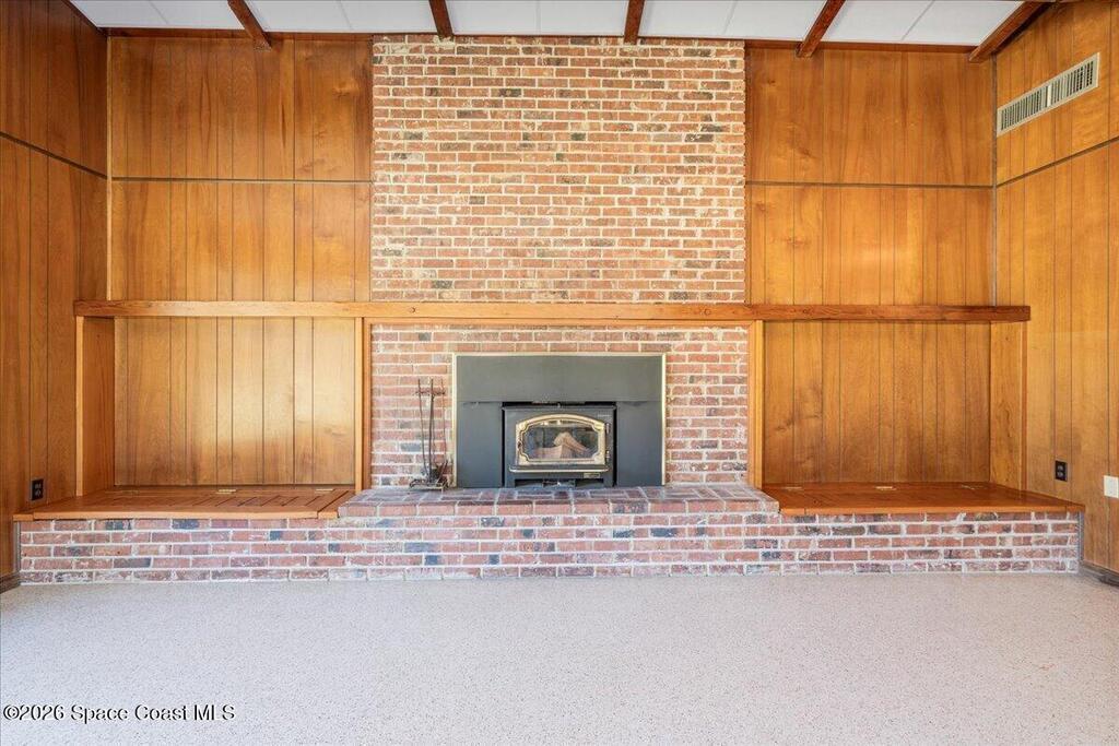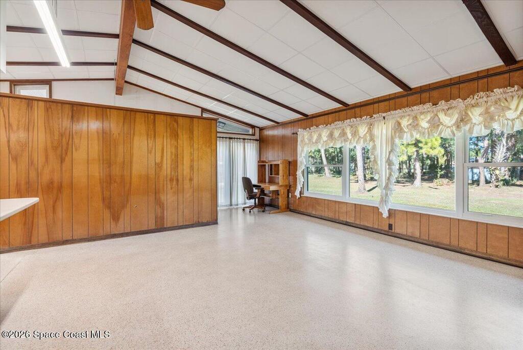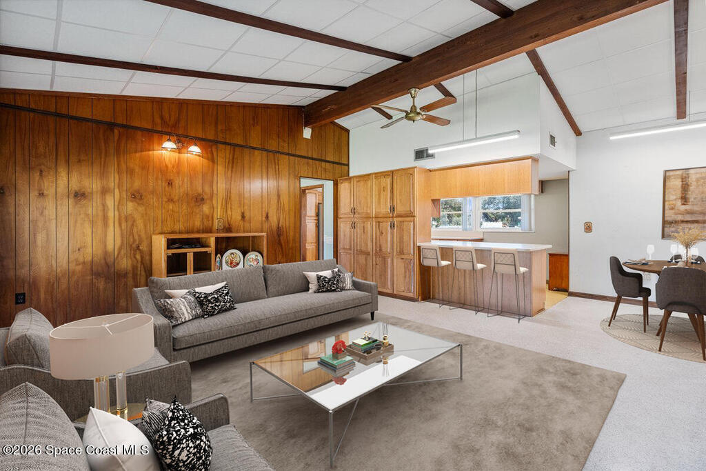 Set on over two private acres, this mid-century modern ranch-style estate is a rare blend of architectural authenticity, thoughtful updates, and future potential. With over 2,700 square feet of single-story living, the home offers expansive spaces designed to feel both grounded and open, exactly as mid-century design was meant to be. Inside, original details steal the show. Exposed wood beams stretch across vaulted ceilings, adding warmth and character, while original terrazzo floors run throughout, delivering durability, style, and a timeless nod to the home's roots. Anchoring the main living area is a striking brick fireplace that serves as both a focal point and a gathering place, equal parts cozy and architectural. Walls of windows bring the outdoors in, flooding the space with natural light and framing peaceful views of the surrounding acreage. The layout flows effortlessly into an updated kitchen where modern functionality meets classic design, making everyday living and enter-